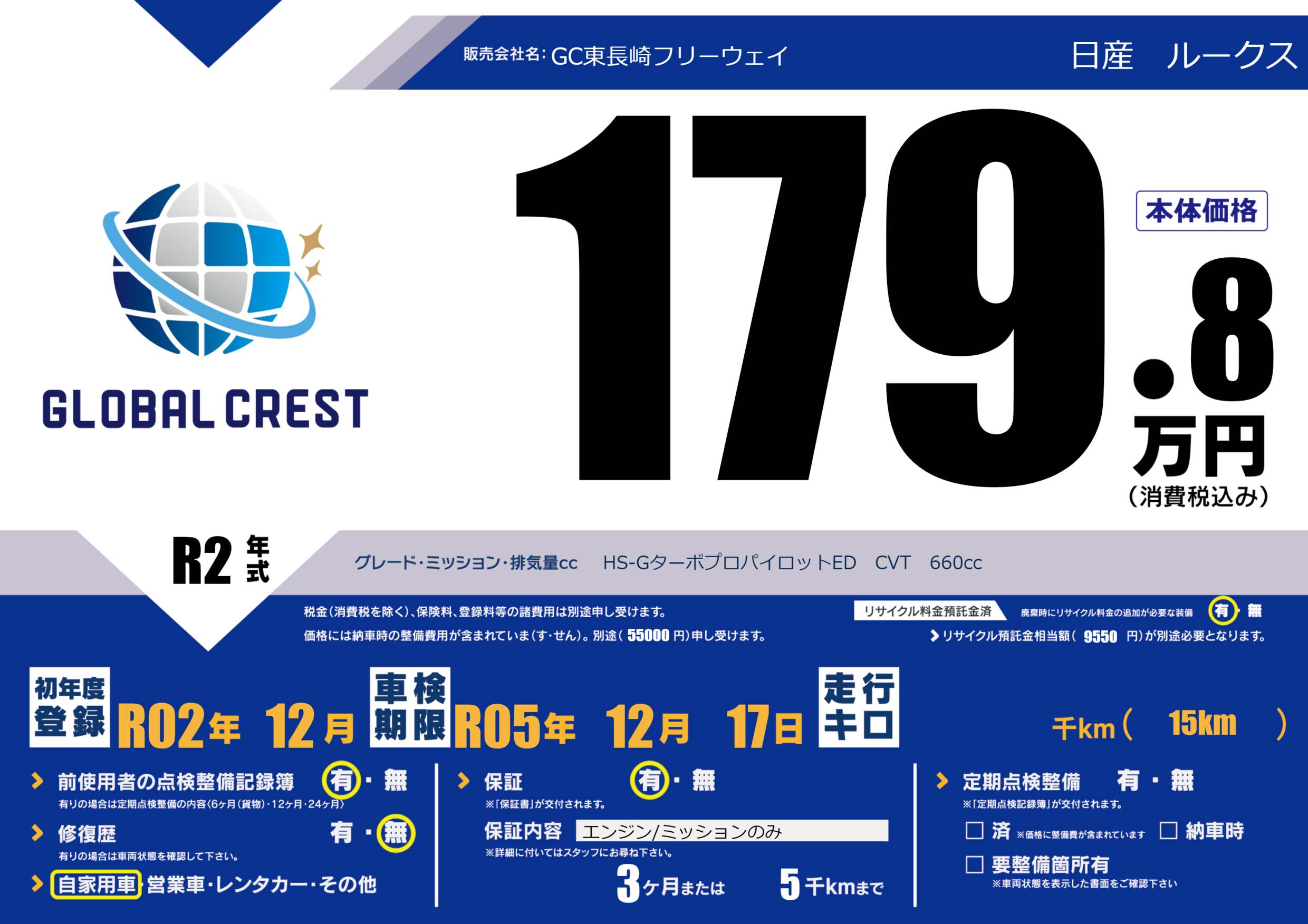 | 車検制限 | R05年 12月 17日 | ||