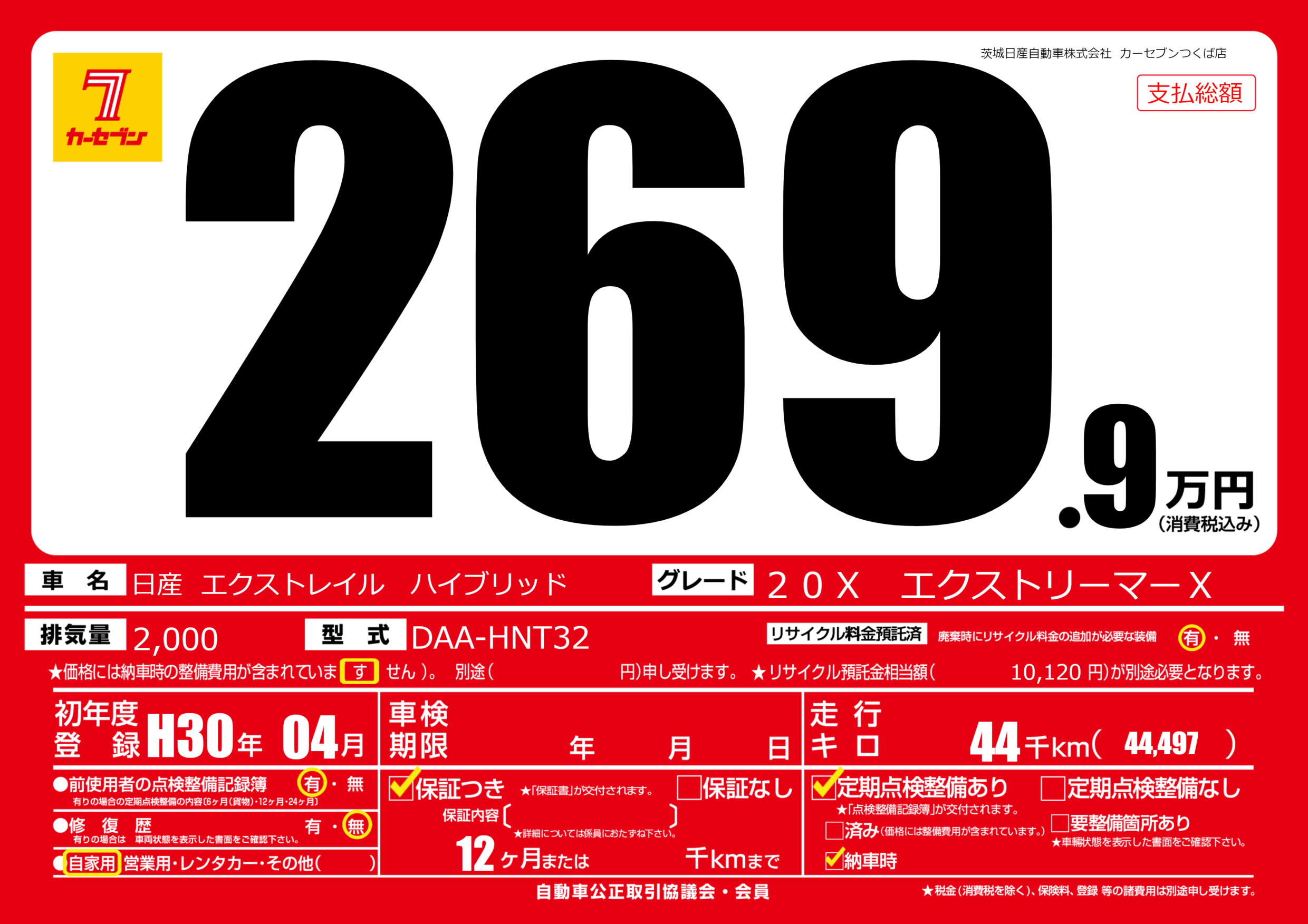| 車名 | 日産 エクストレイル ハイブリッド | グレード ミッション 排気量 |