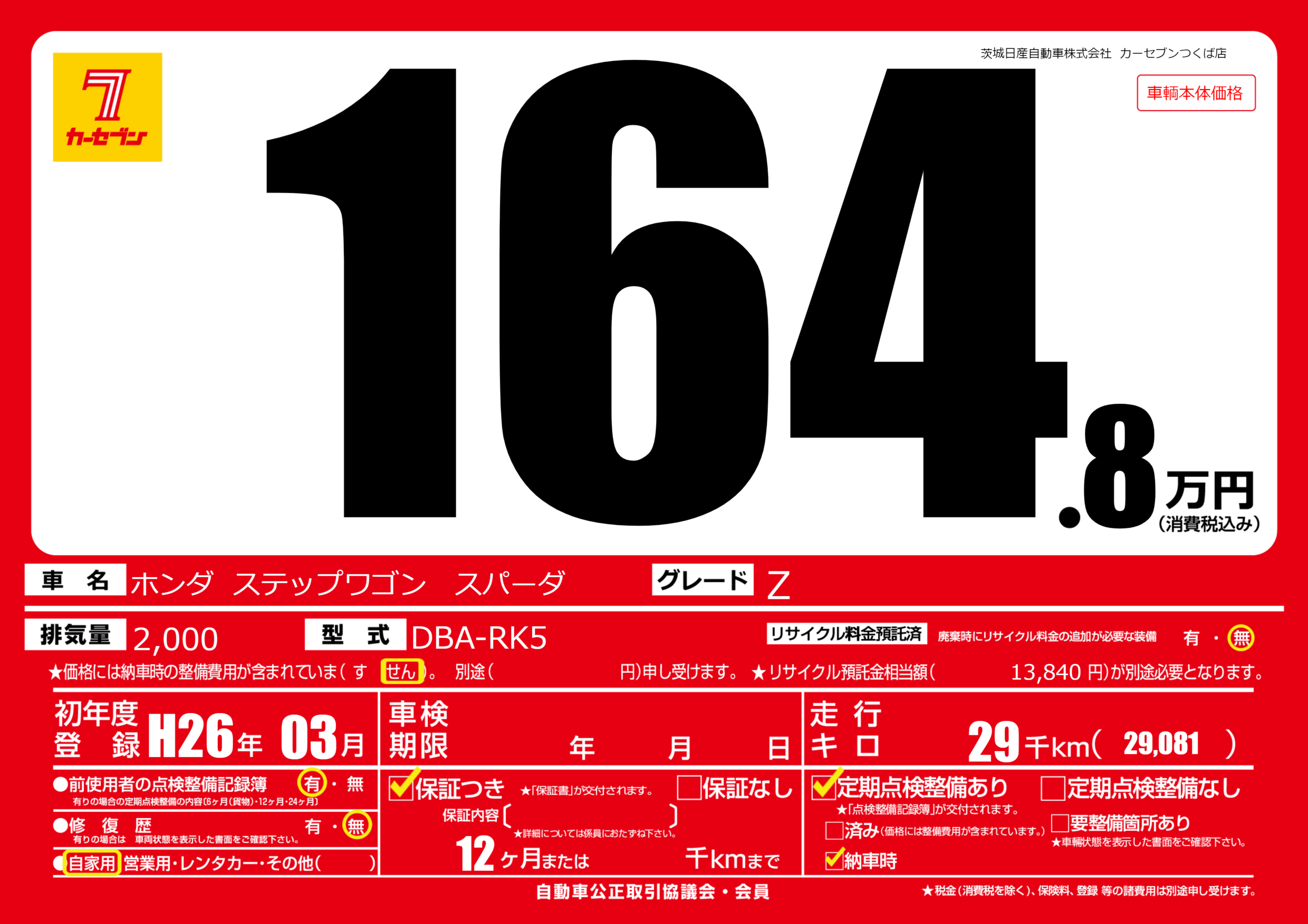 | 定期点検整備 | 定期点検整備あり 納車時あり | ||