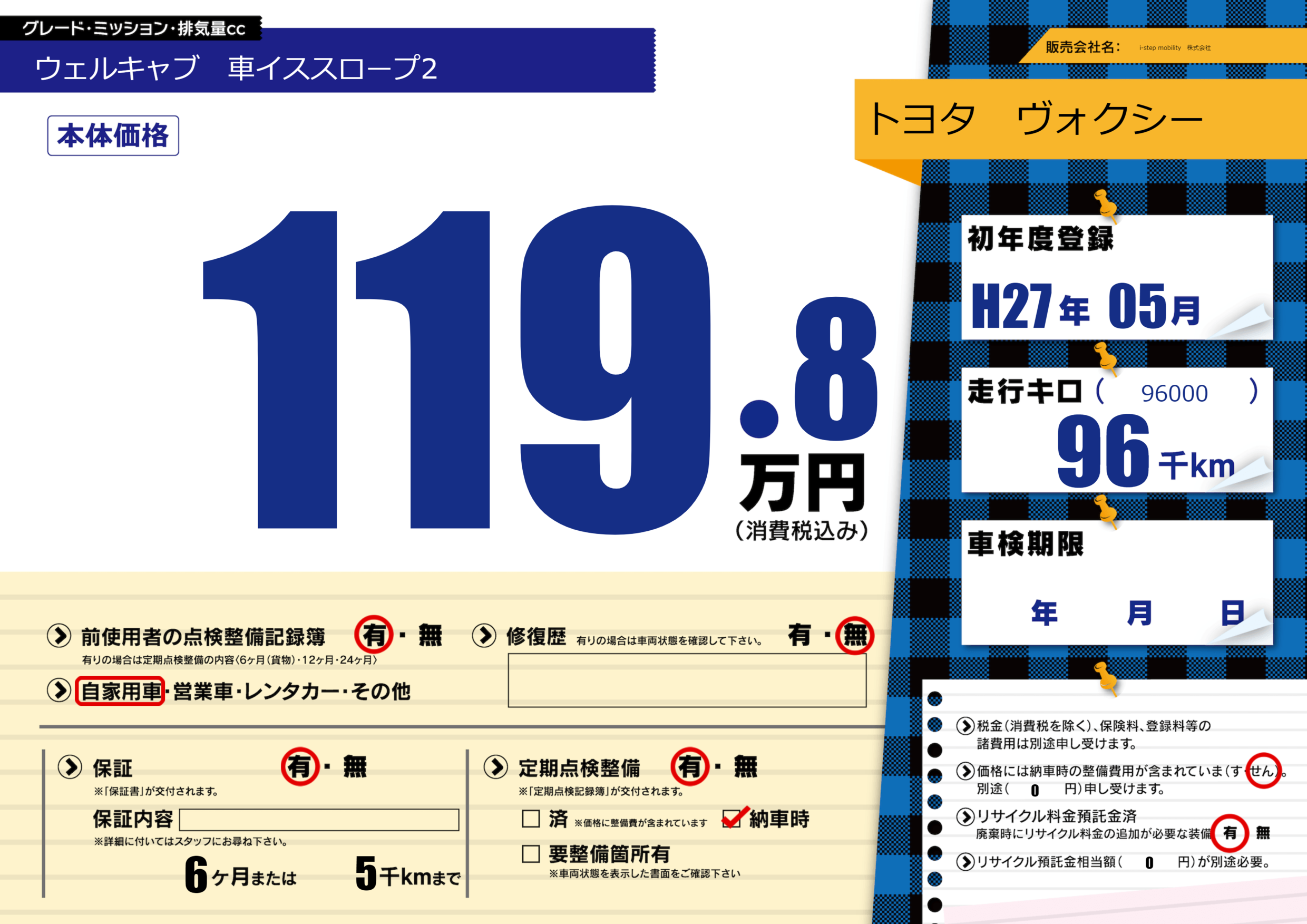 | 定期点検整備 | 定期点検整備あり 納車時あり | ||