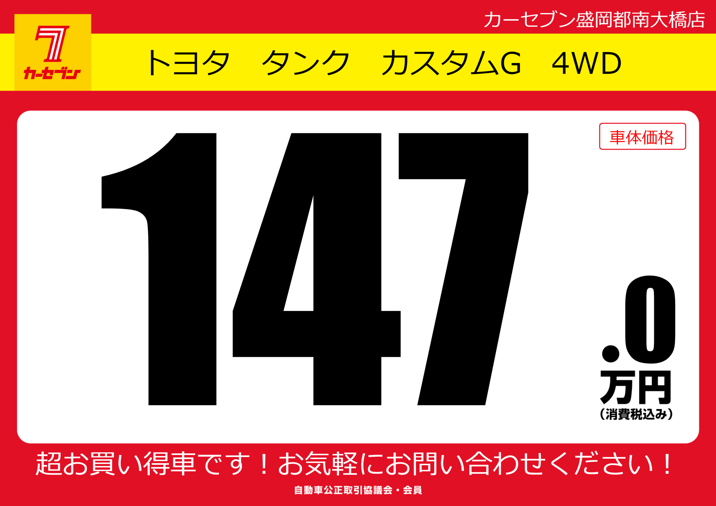 | 車名 | トヨタ タンク カスタムG 4WD | グレード ミッション 排気量 |