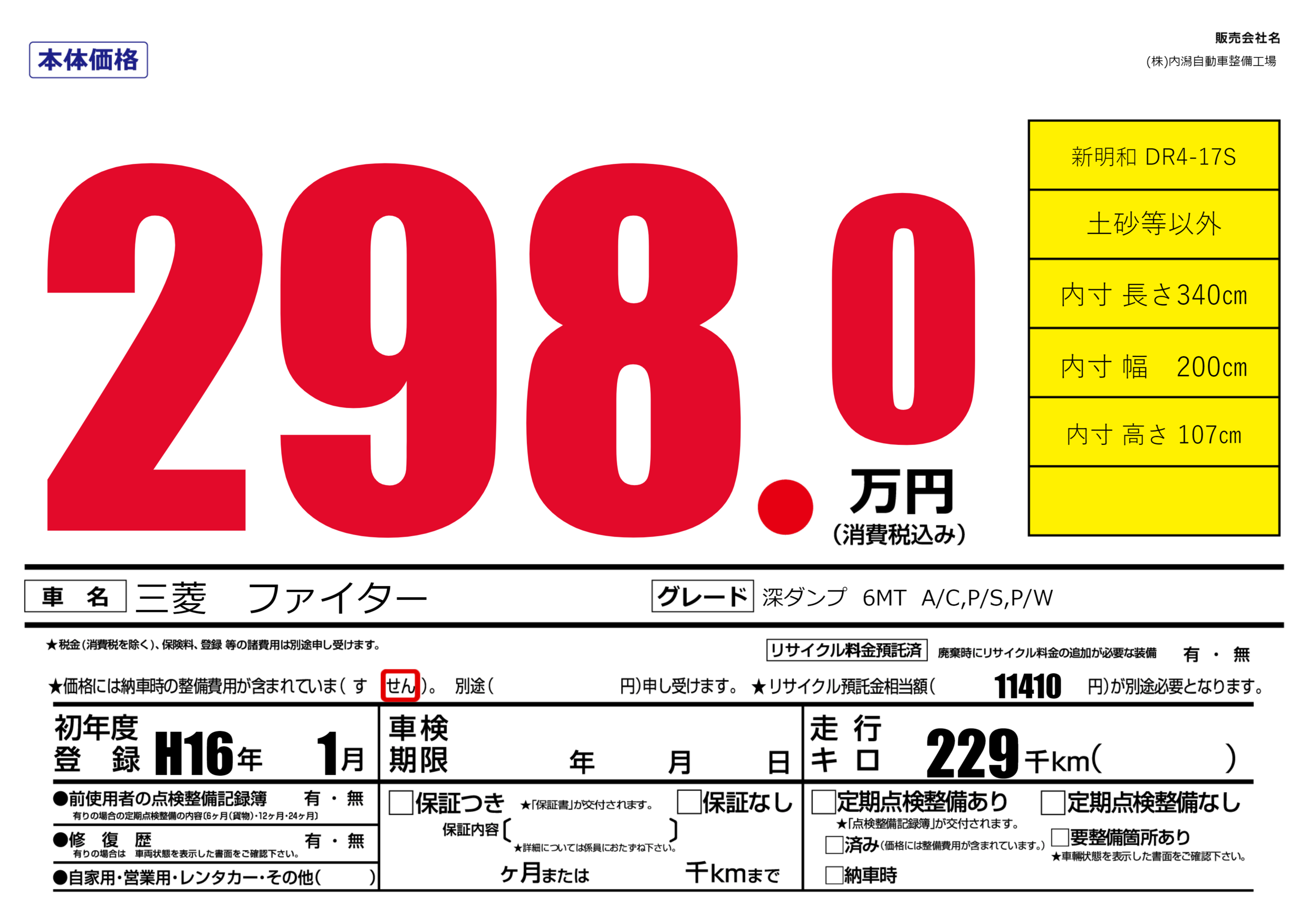 | 車名 | 三菱 ファイター | グレード ミッション 排気量 |