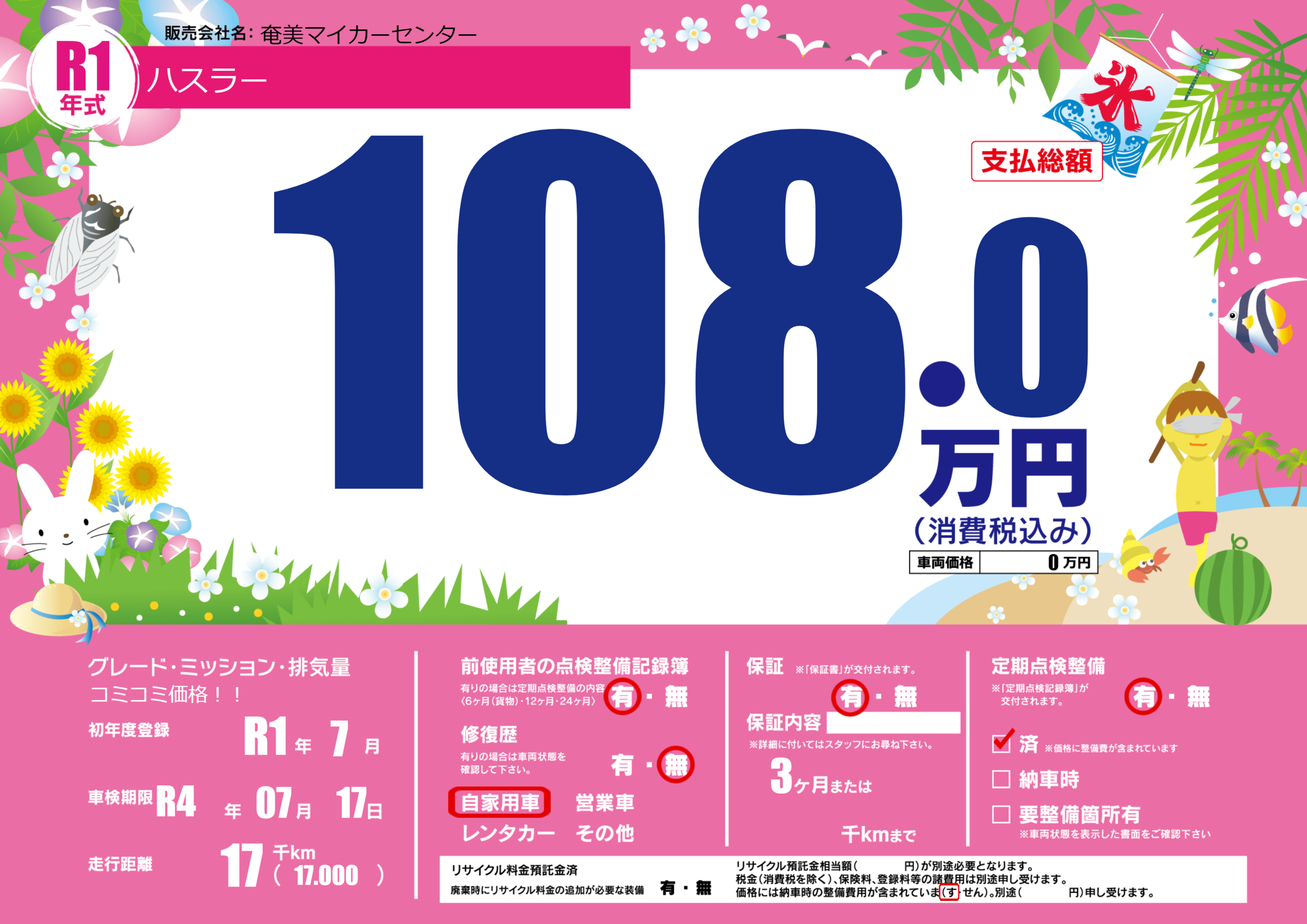 | 定期点検整備 | 定期点検整備あり 定期点検整備済み | ||