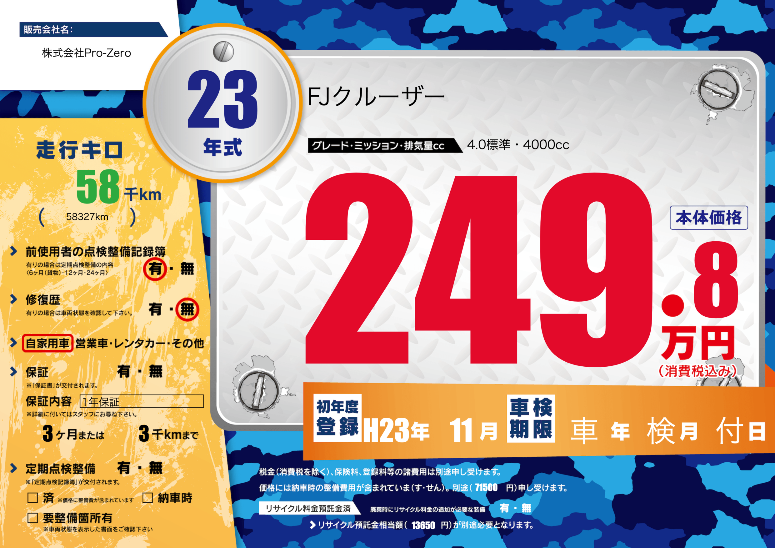 | 車名 | FJクルーザー | グレード ミッション 排気量 |
