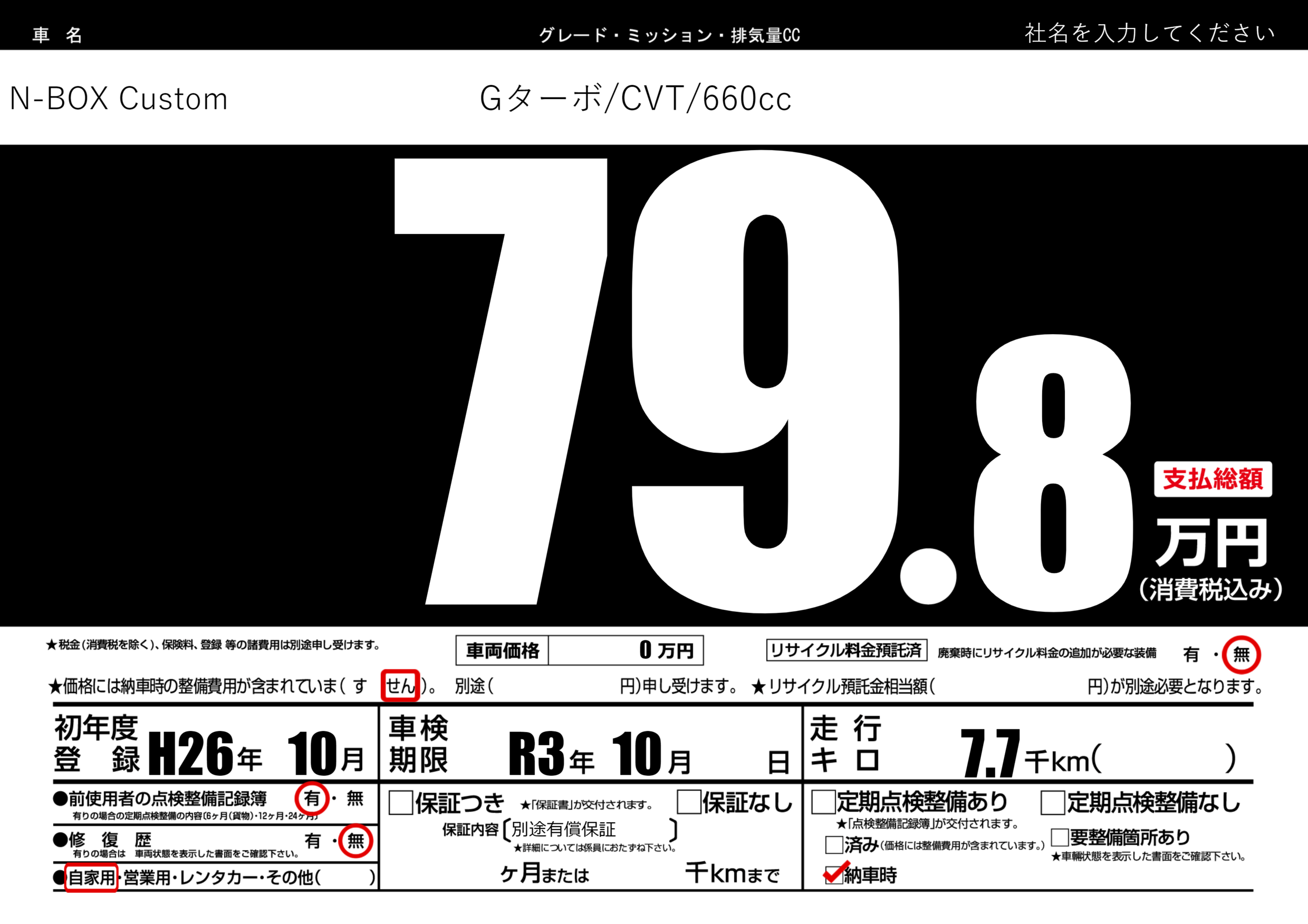 | 車名 | N-BOX Custom | グレード ミッション 排気量 |