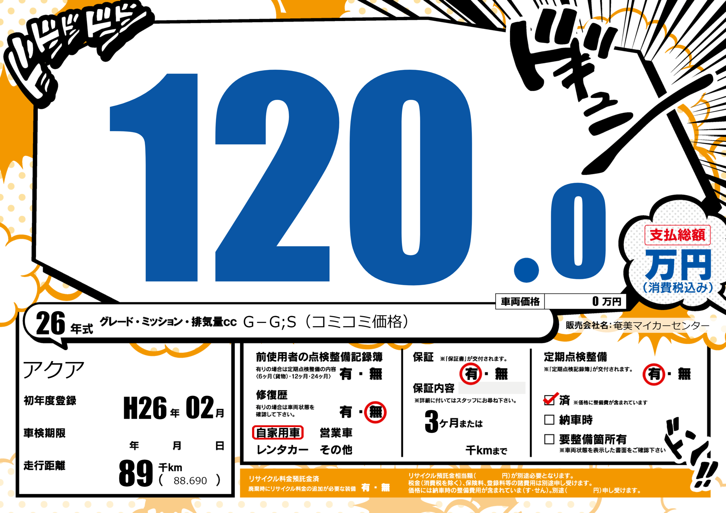| 定期点検整備 | 定期点検整備あり 定期点検整備済み | ||