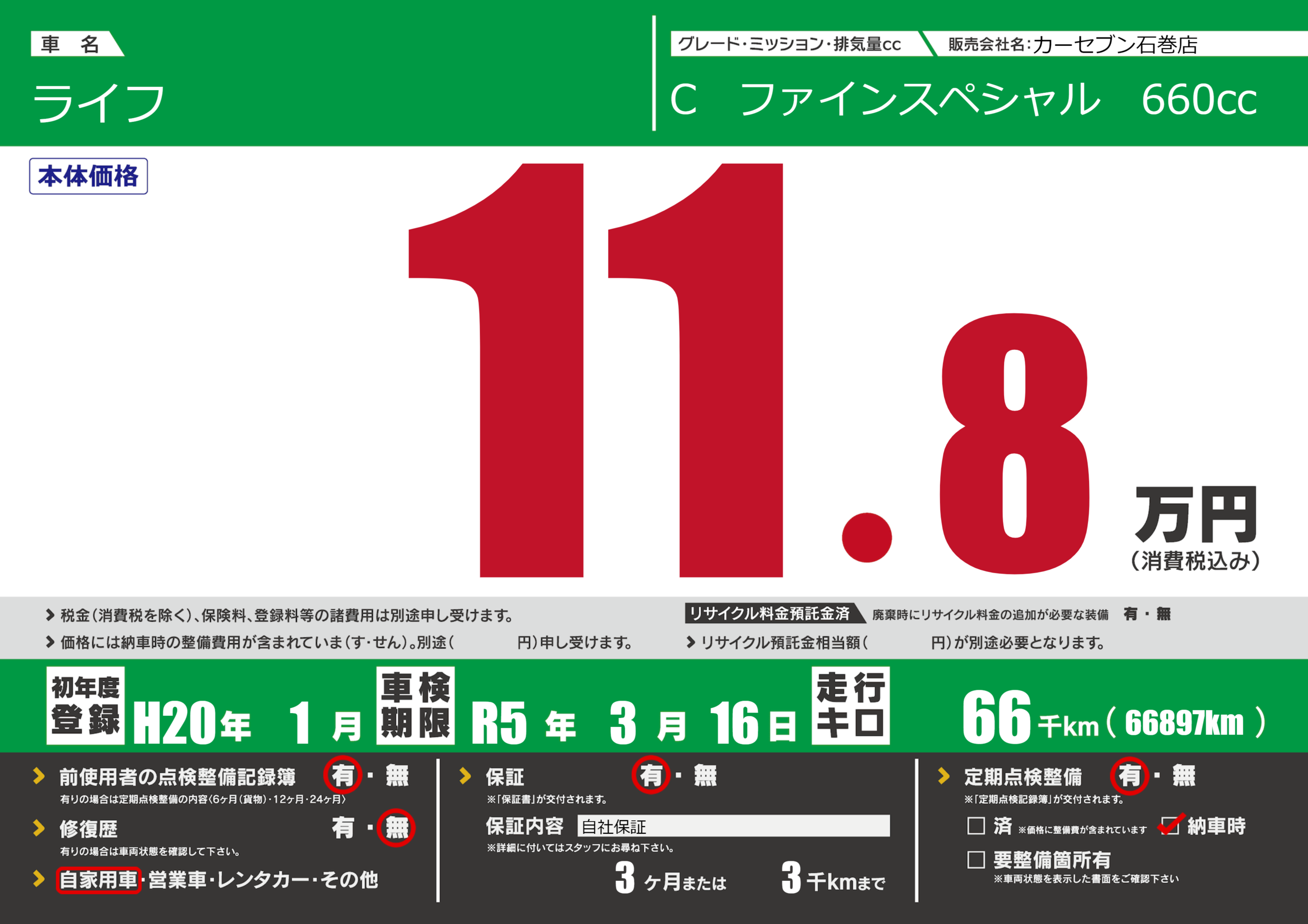 | 車名 | ライフ | グレード ミッション 排気量 |