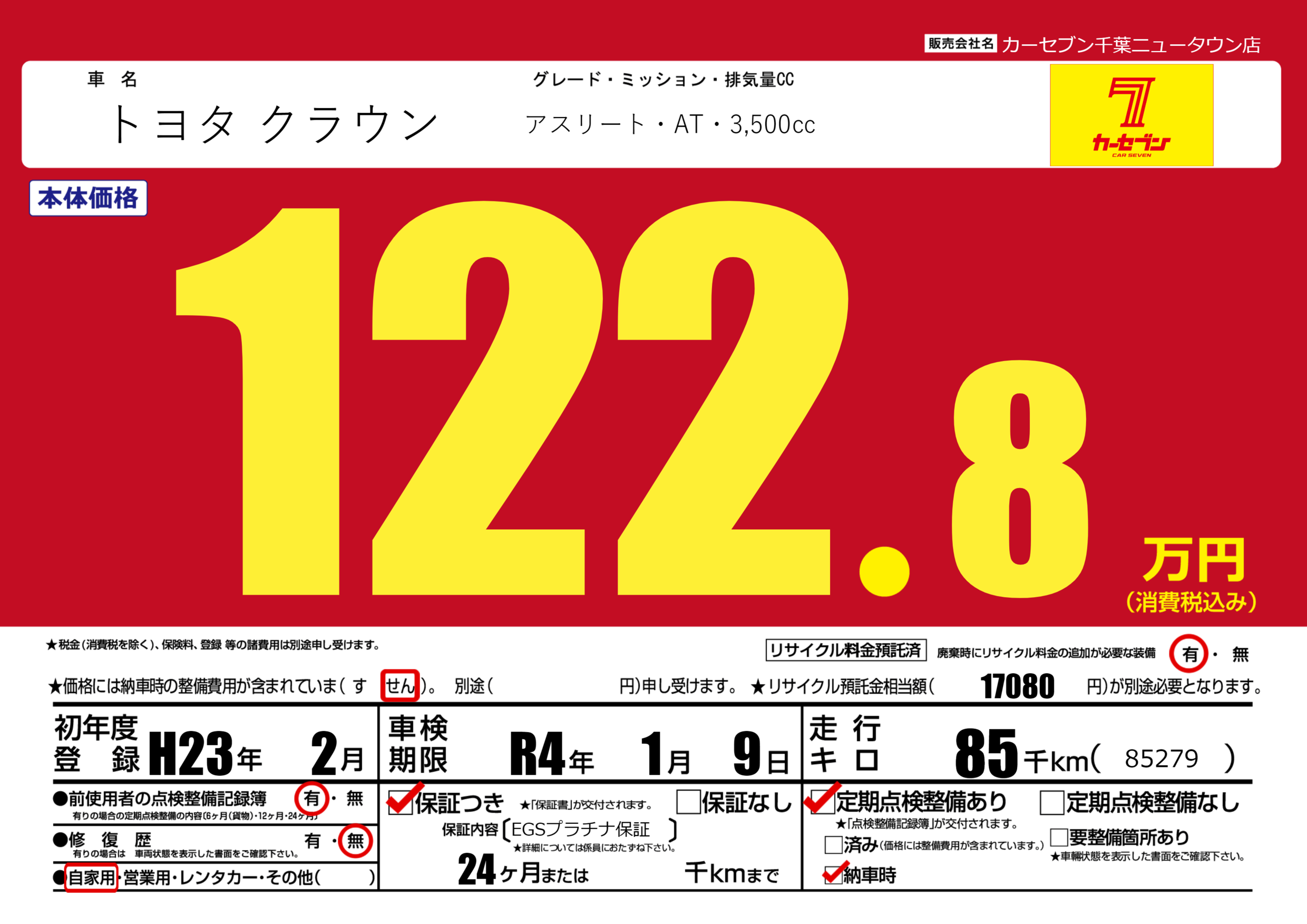 保証付き 保証内容(EGSプラチナ保証) 24ヶ月または千km |