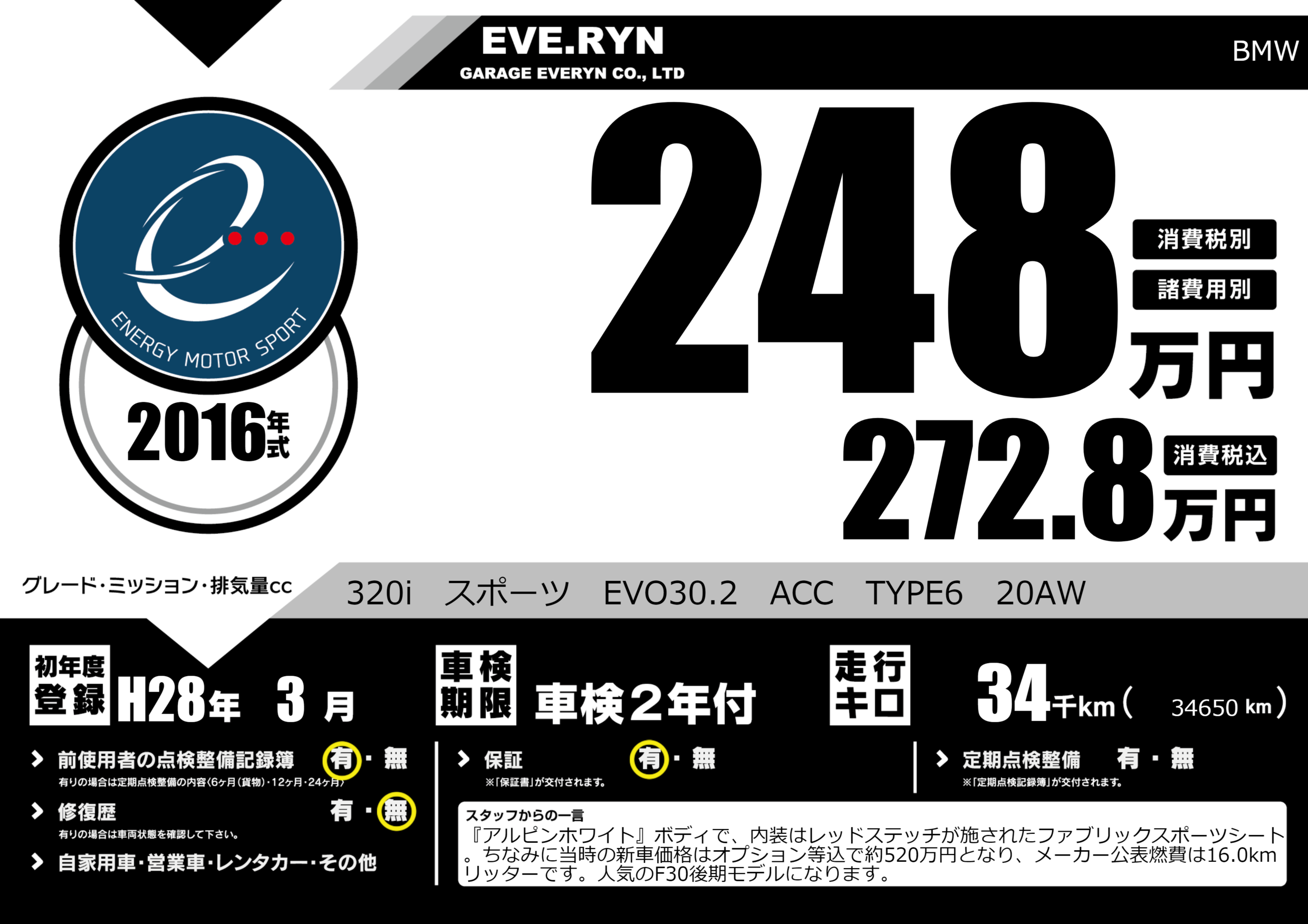 320i スポーツ EVO30.2 ACC TYPE6 20AW |