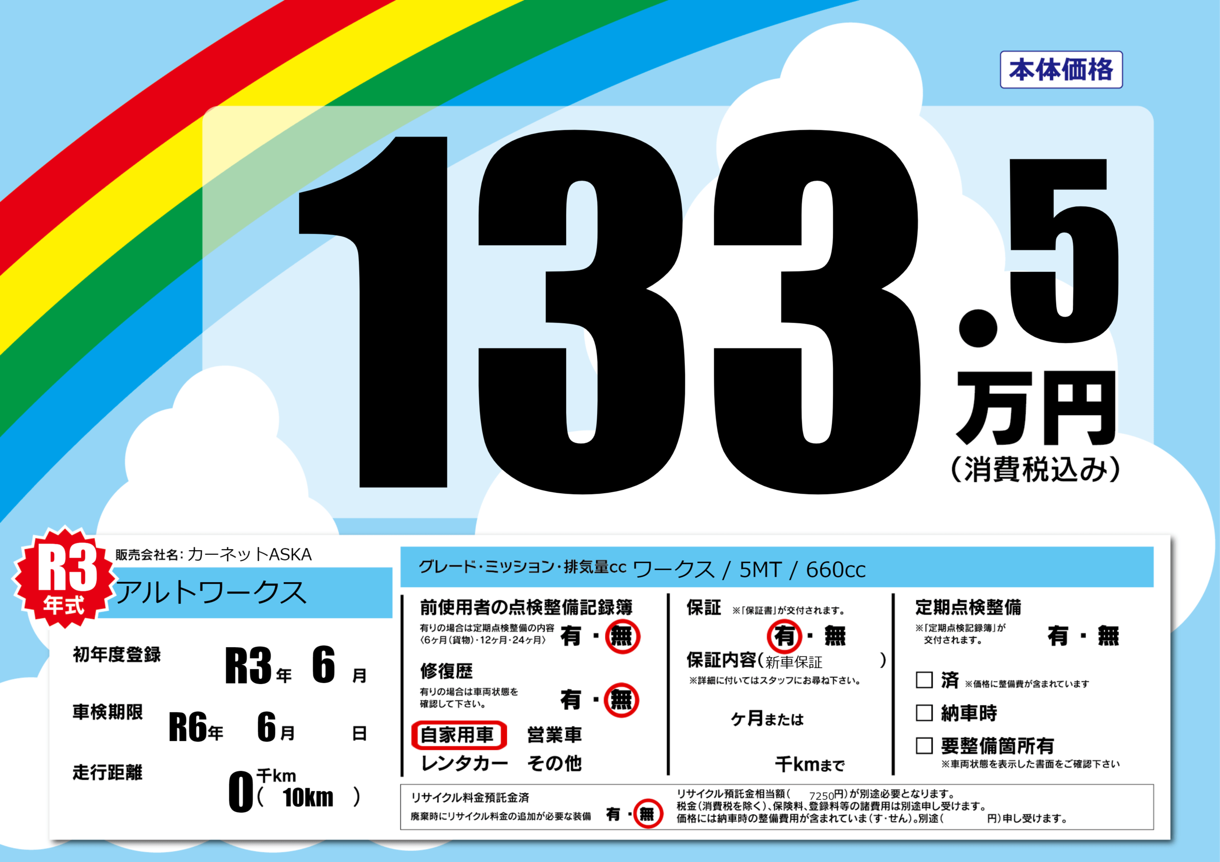| 車名 | アルトワークス | グレード ミッション 排気量 |