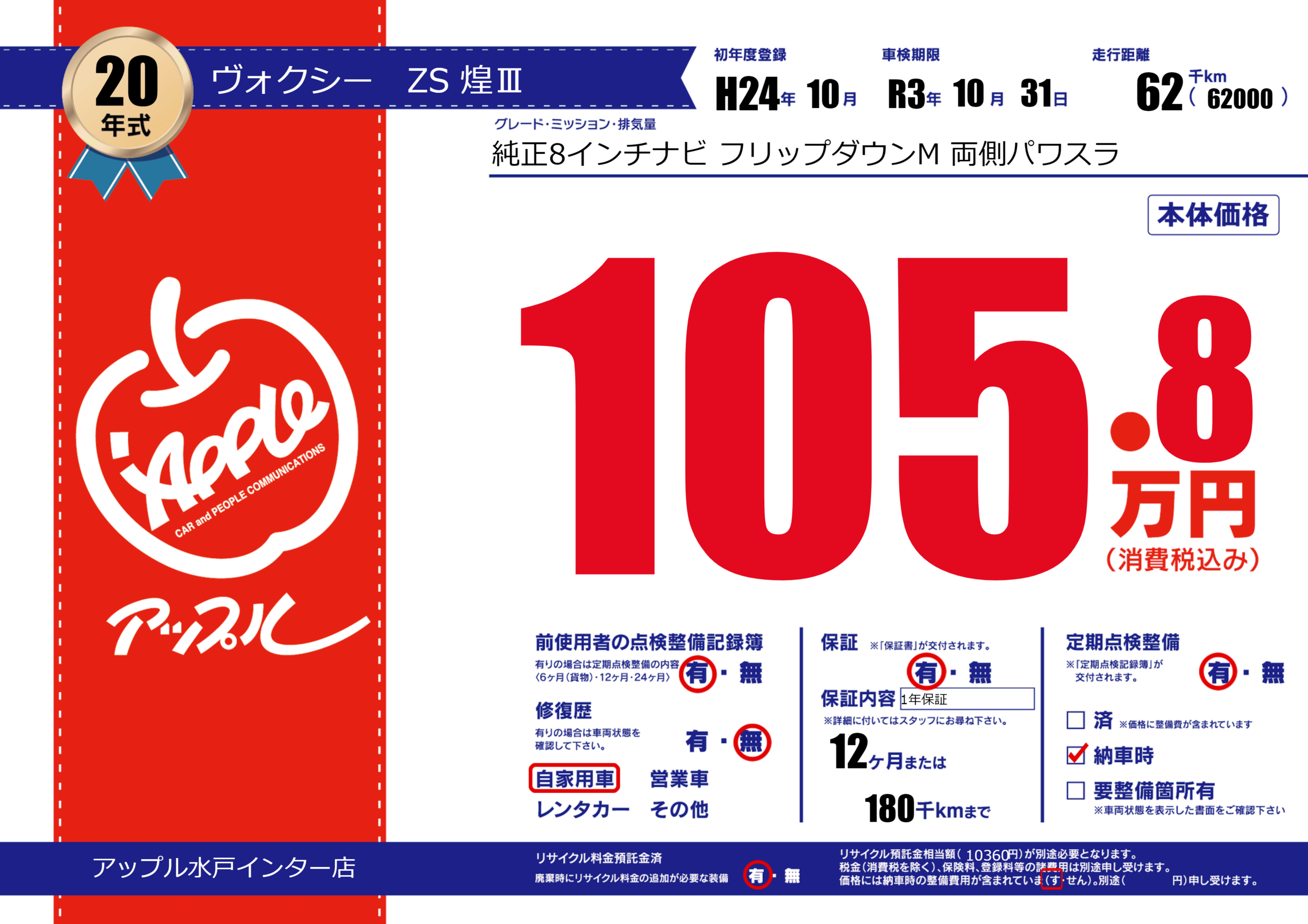 | 走行キロ | 6.2万km | 初年度登録 | H24年10月 |