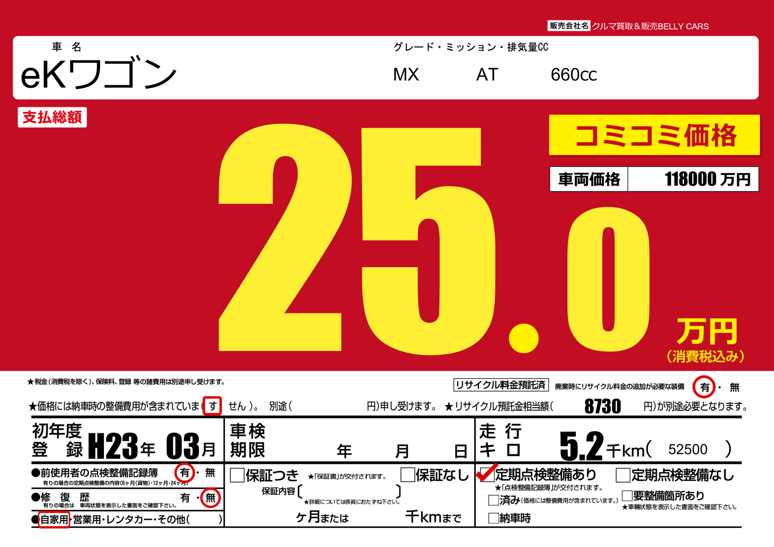 | 車名 | eKワゴン | グレード ミッション 排気量 |