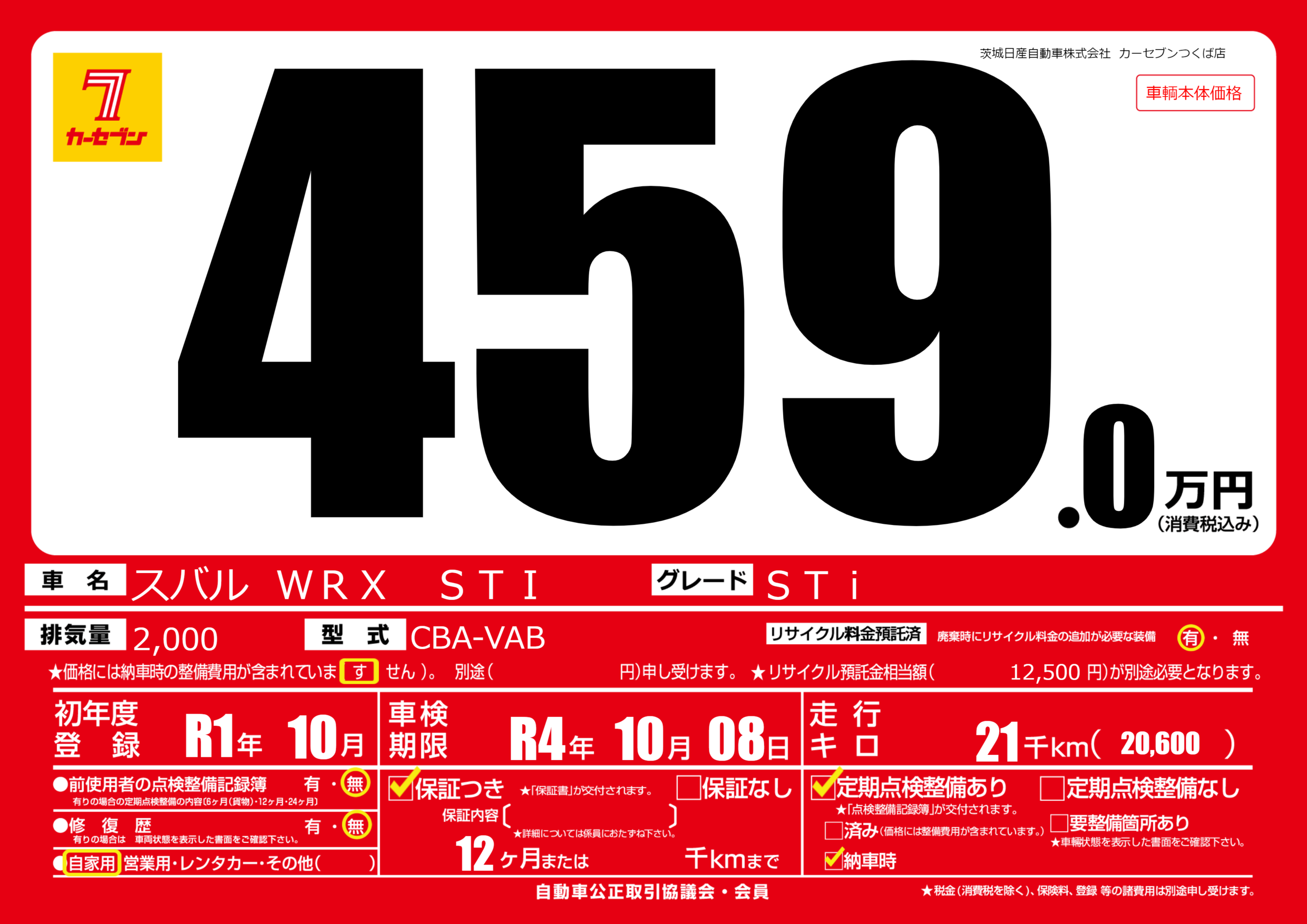 保証付き 保証内容(---) 12ヶ月または()千kmまで |