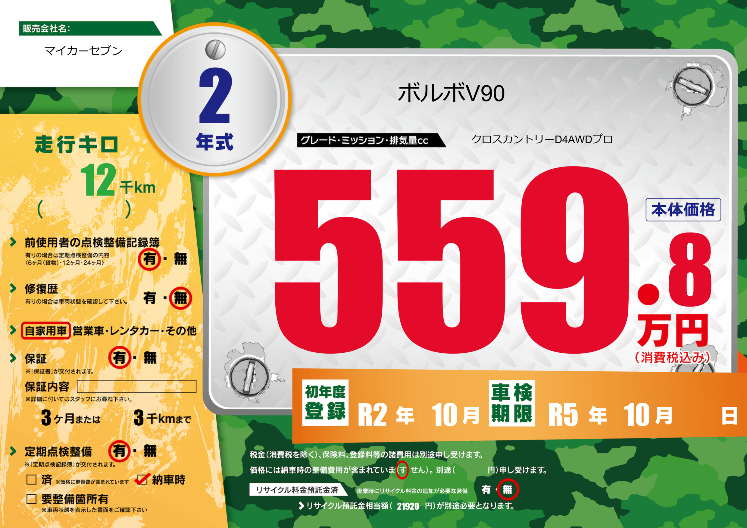 | 車名 | ボルボV90 | グレード ミッション 排気量 |