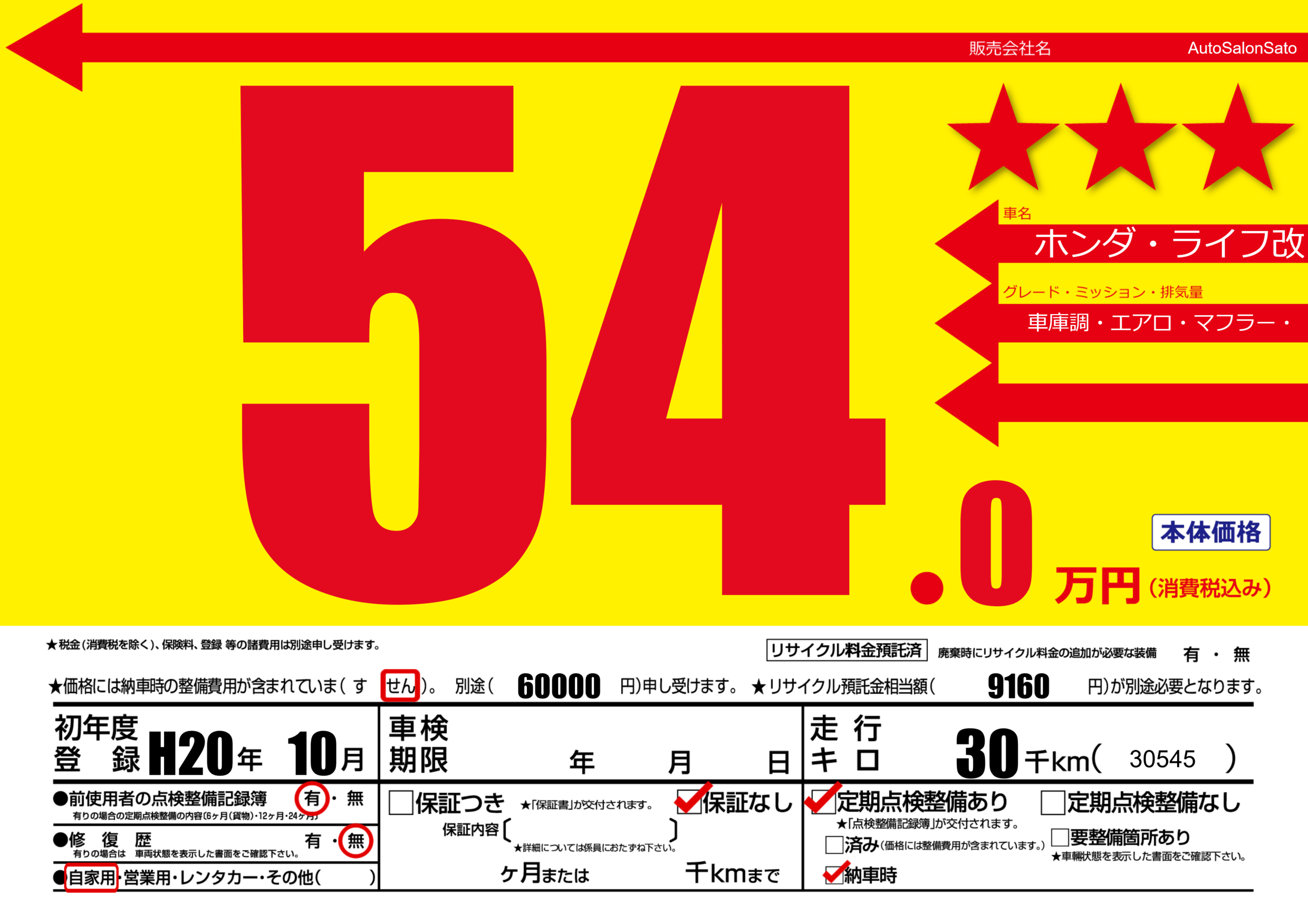 | 車名 | ホンダ・ライフ改 | グレード ミッション 排気量 |
