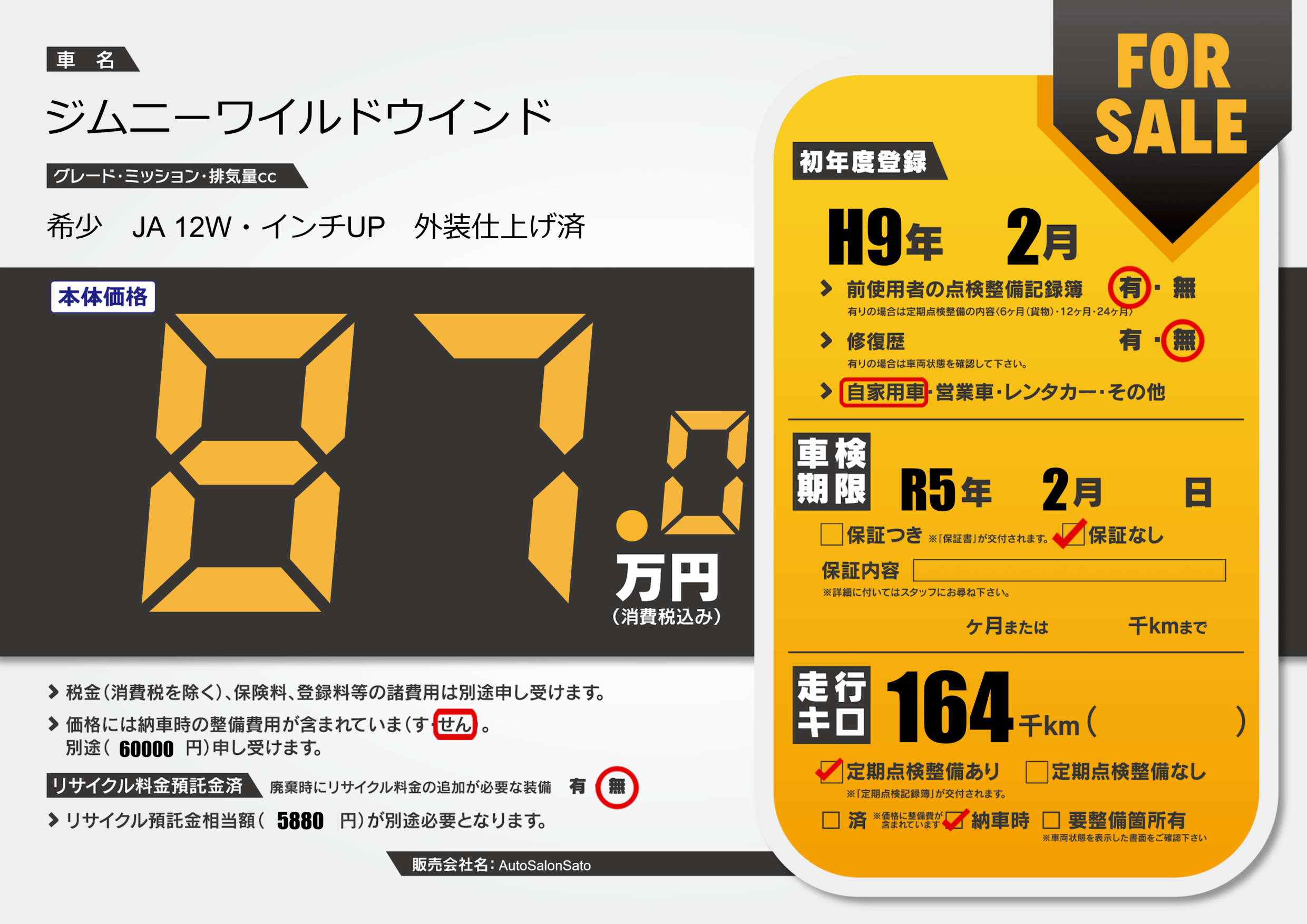 | 車検制限 | R5年 2月 - 日 | ||