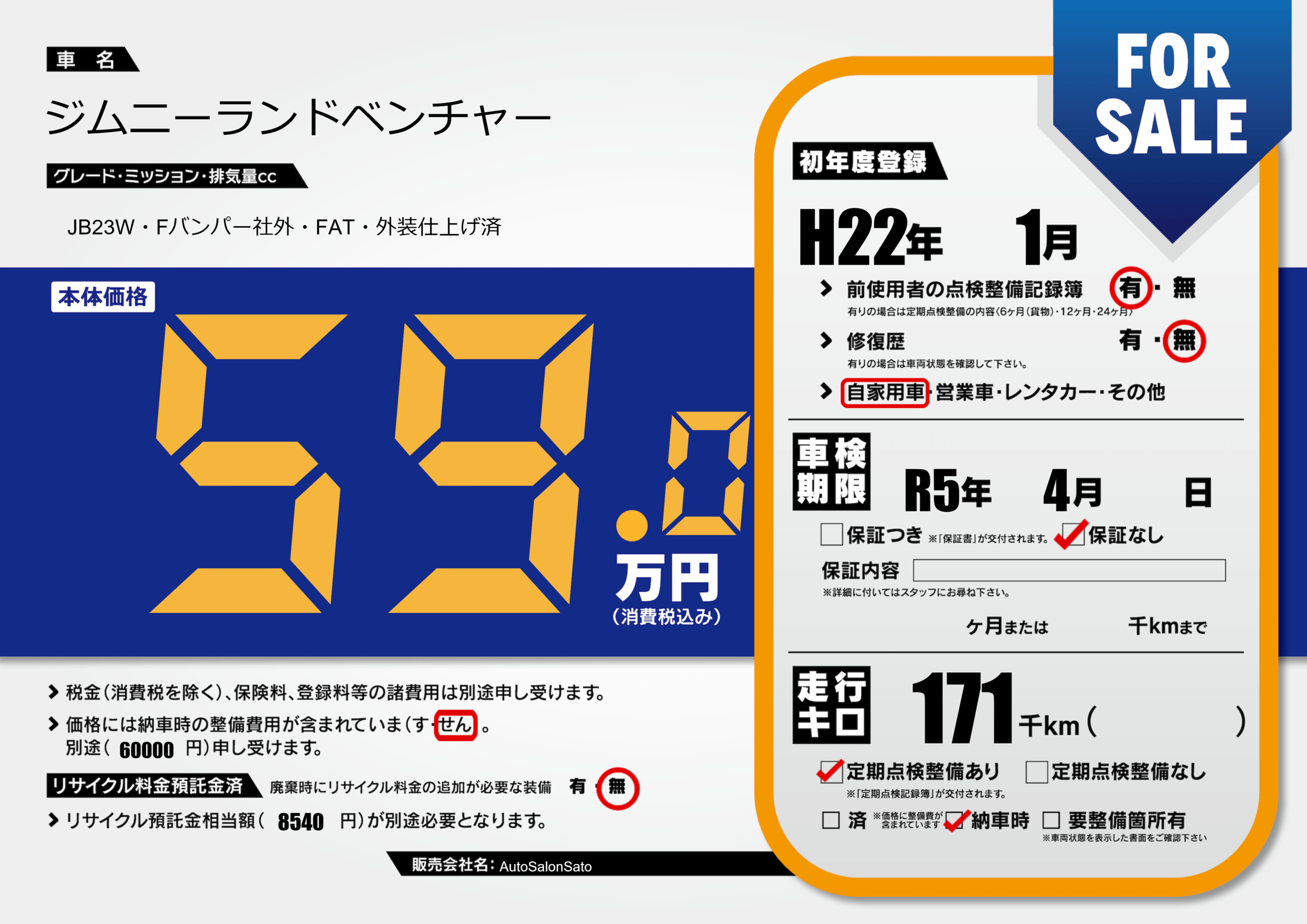 | 車検制限 | R5年 4月 - 日 | ||