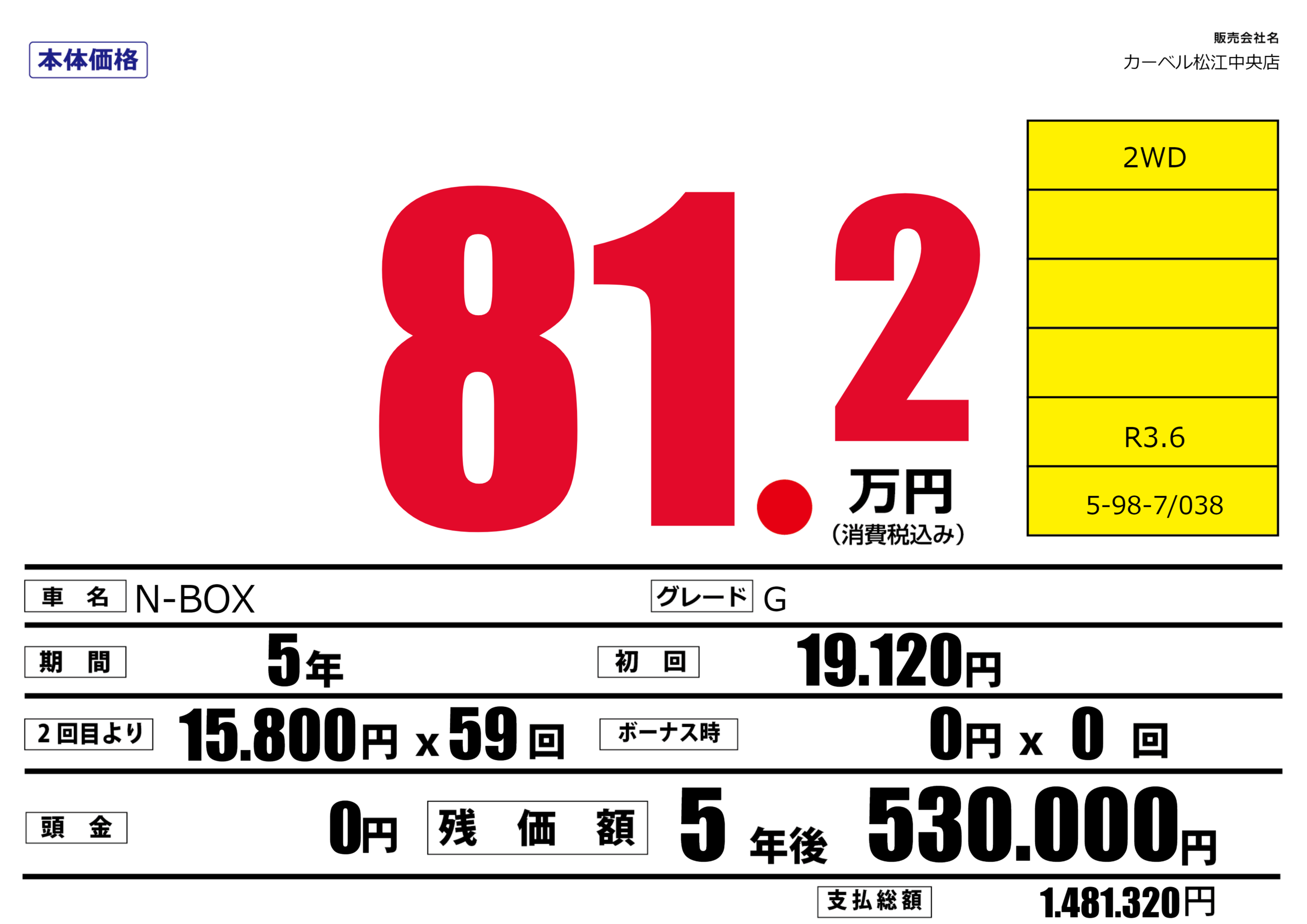 | 車名 | N-BOX | グレード ミッション 排気量 |