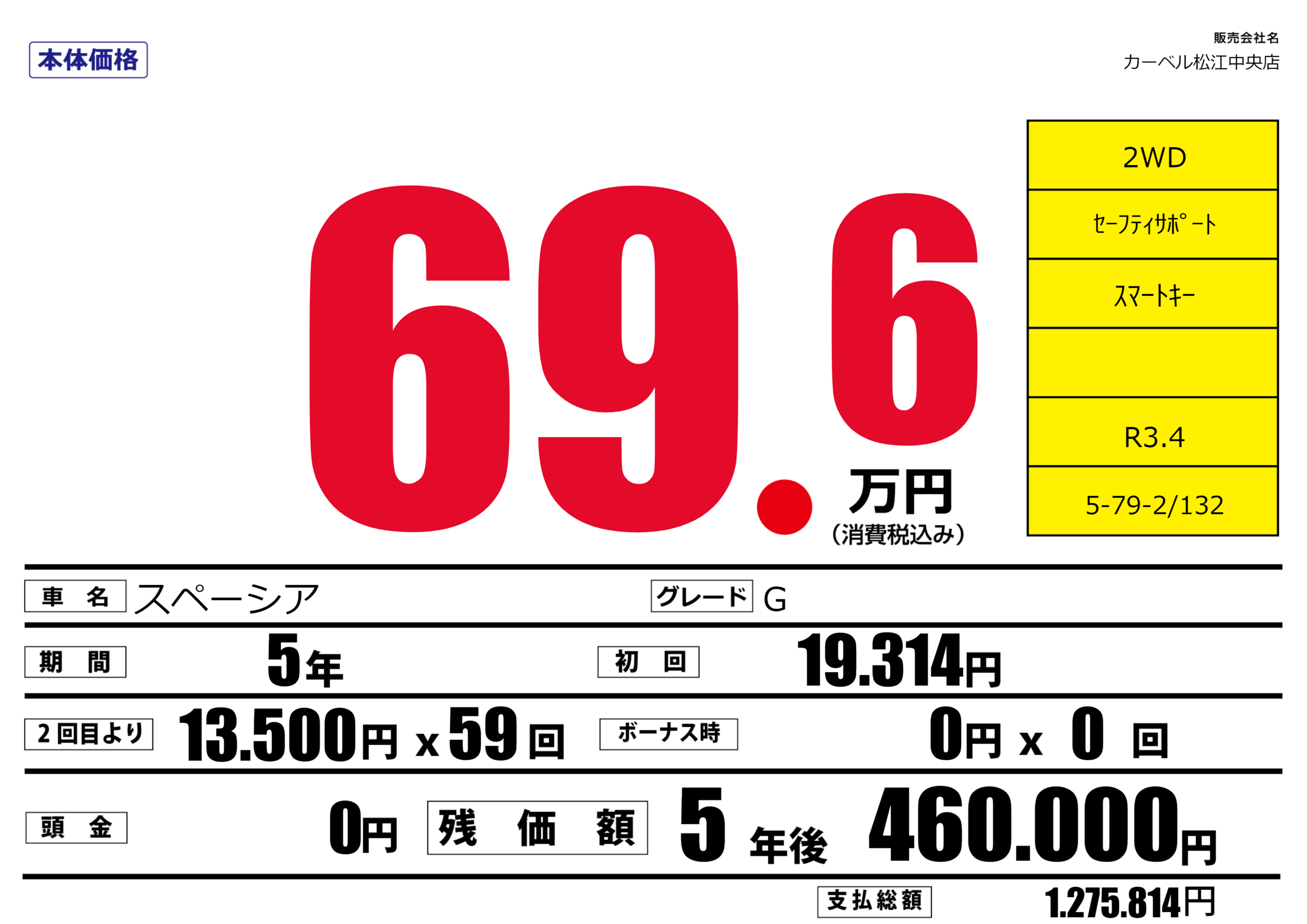 | 車名 | スペーシア | グレード ミッション 排気量 |