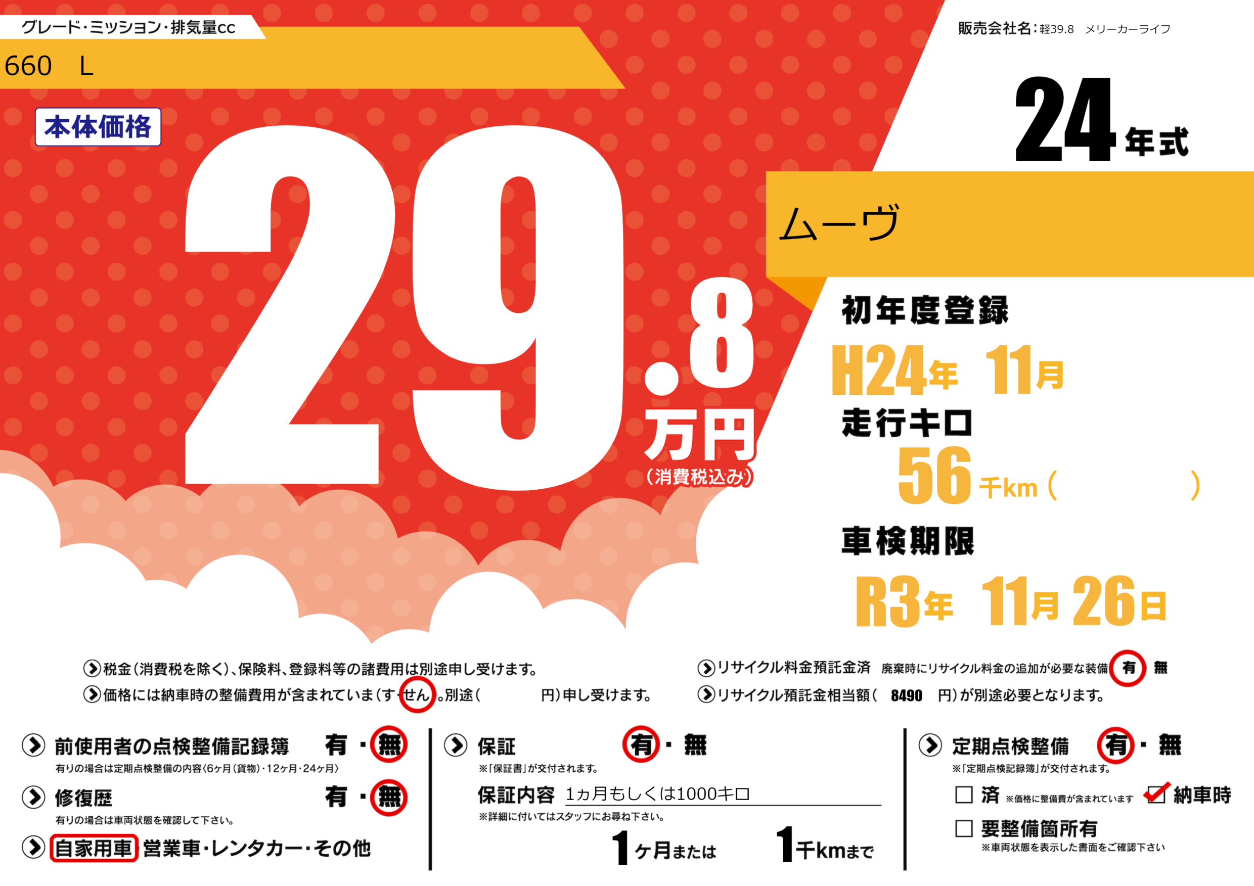 なし | 車検制限 | R3年11月26月 |