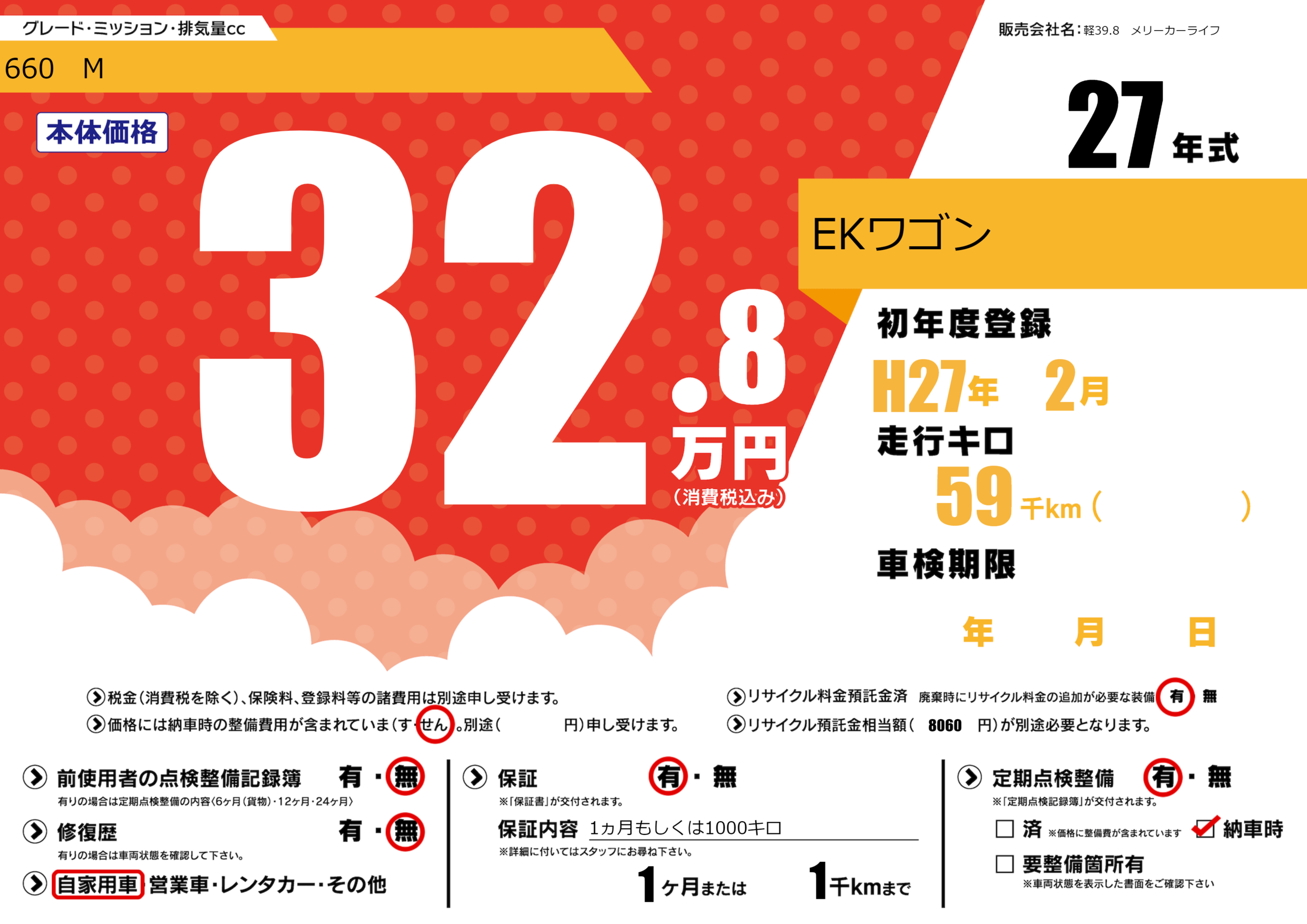 | 車名 | EKワゴン | グレード ミッション 排気量 |