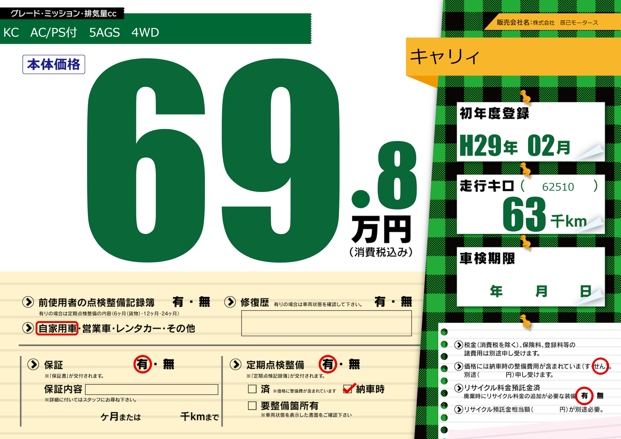 | 定期点検整備 | 定期点検整備あり 納車時あり | ||