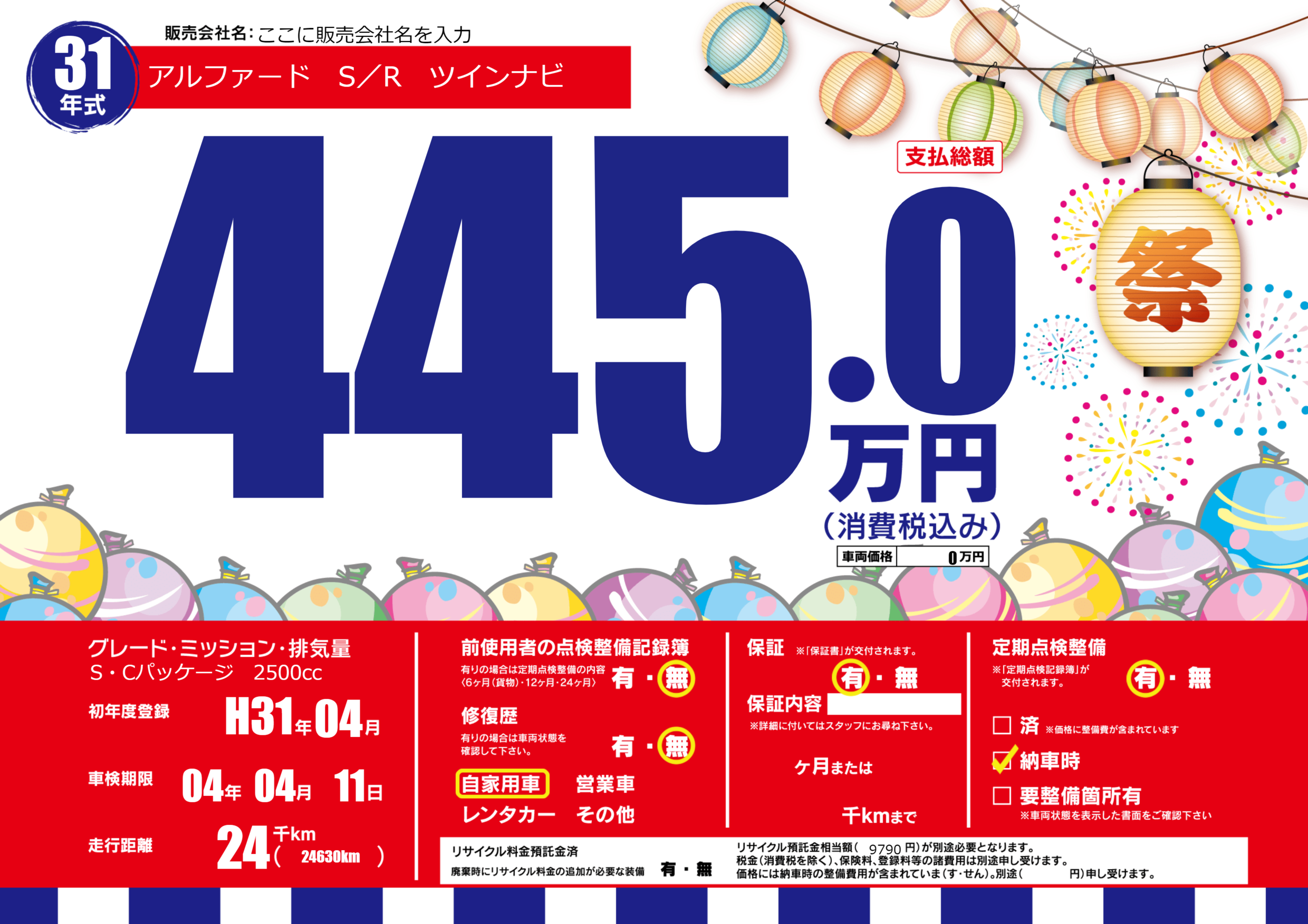 | 定期点検整備 | 定期点検整備あり 納車時あり | ||