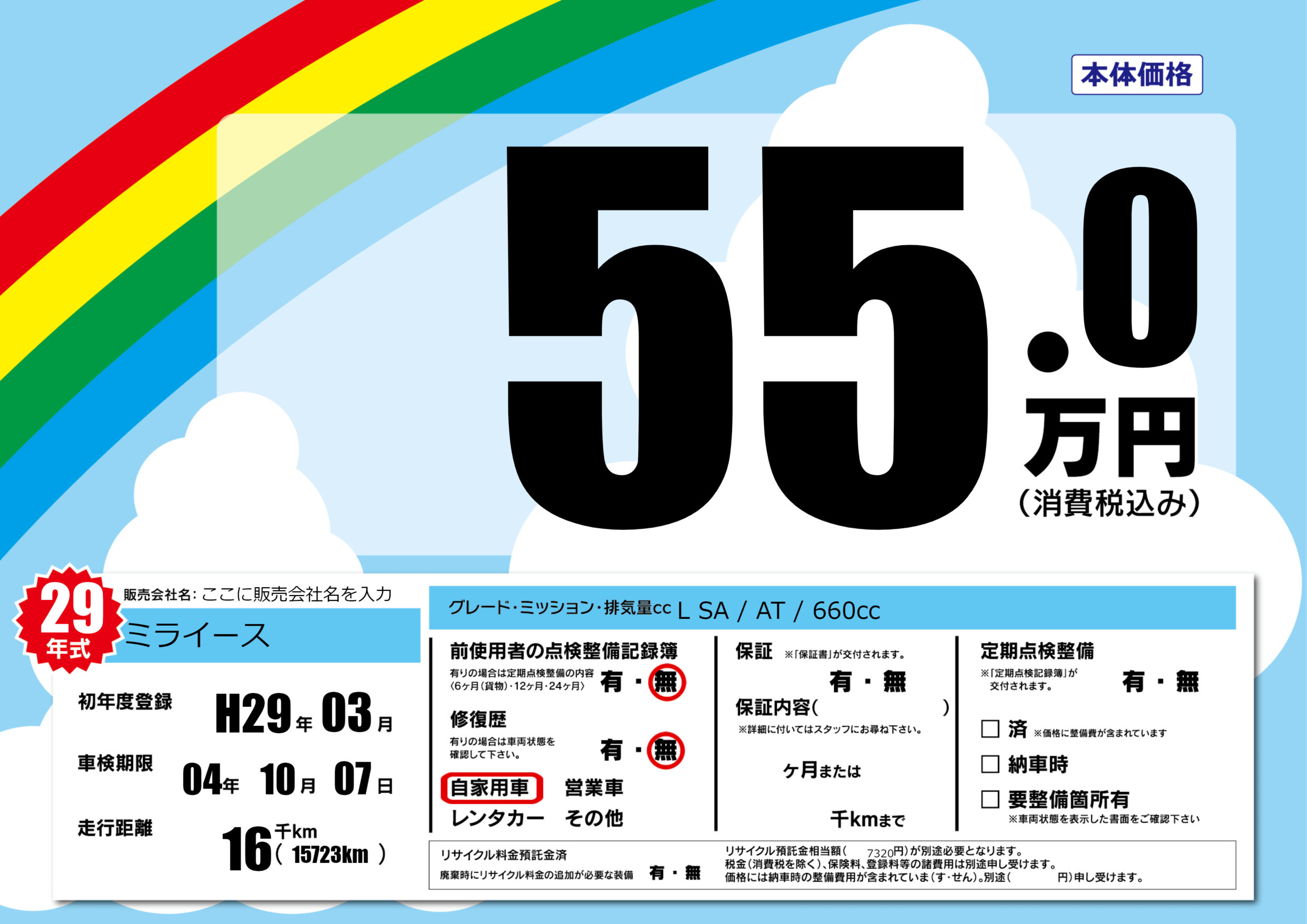 | 車名 | ミライース | グレード ミッション 排気量 |