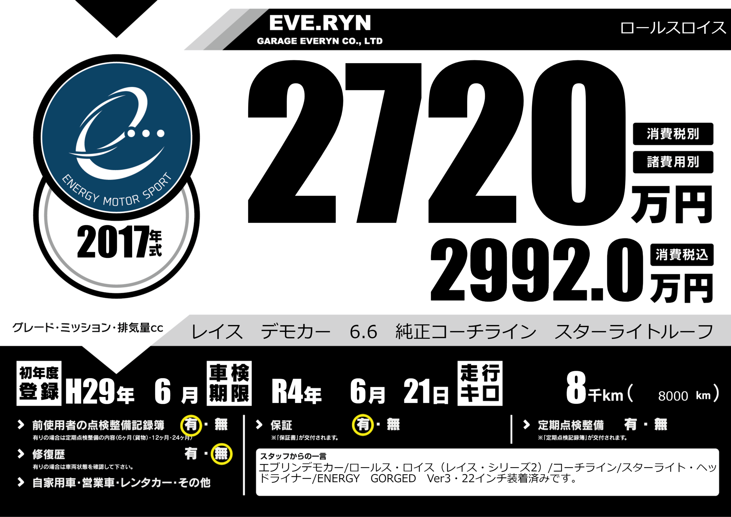 レイス デモカー 6.6 純正コーチライン スターライトルーフ |