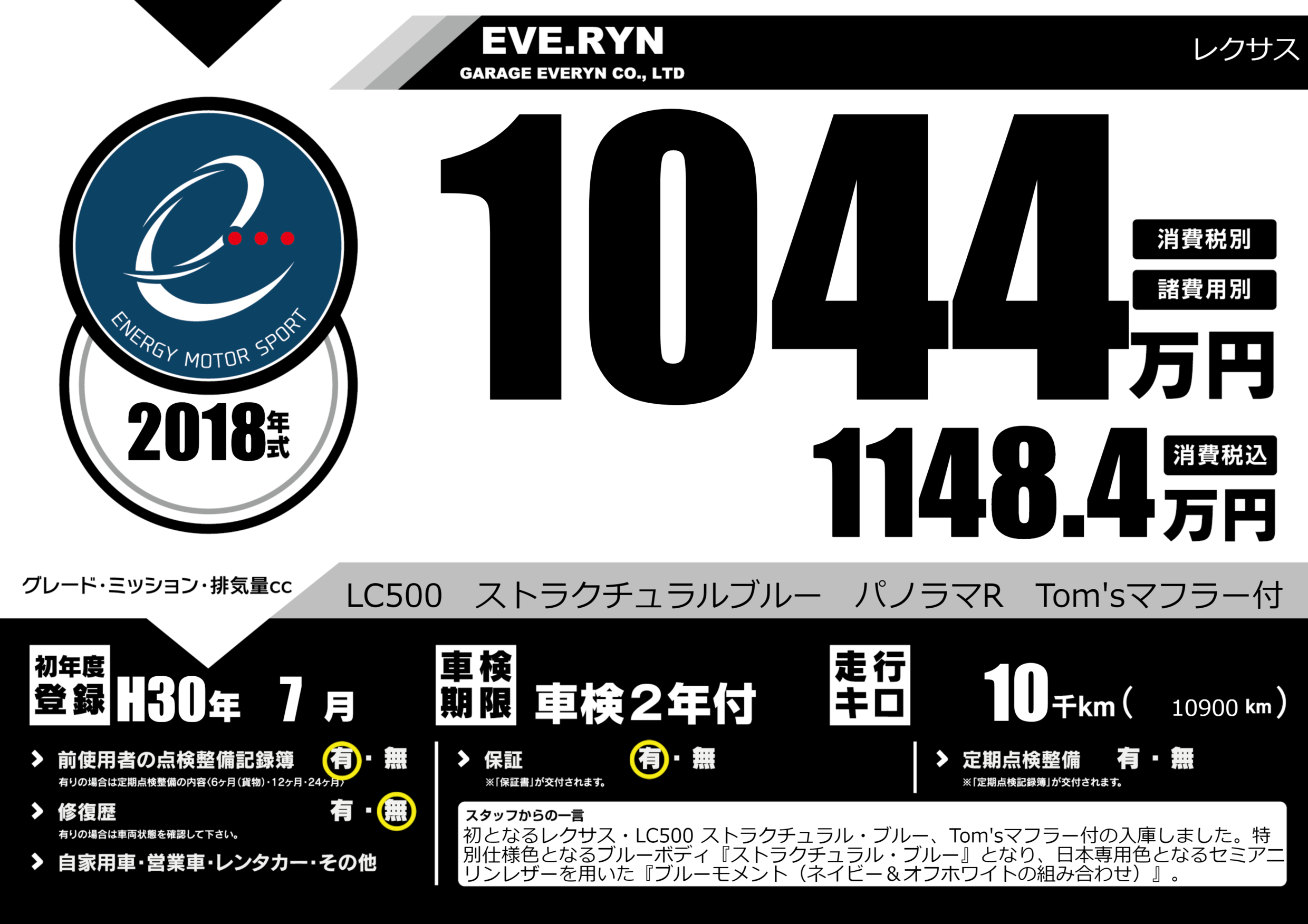 LC500 ストラクチュラルブルー パノラマR Tom'sマフラー付 |