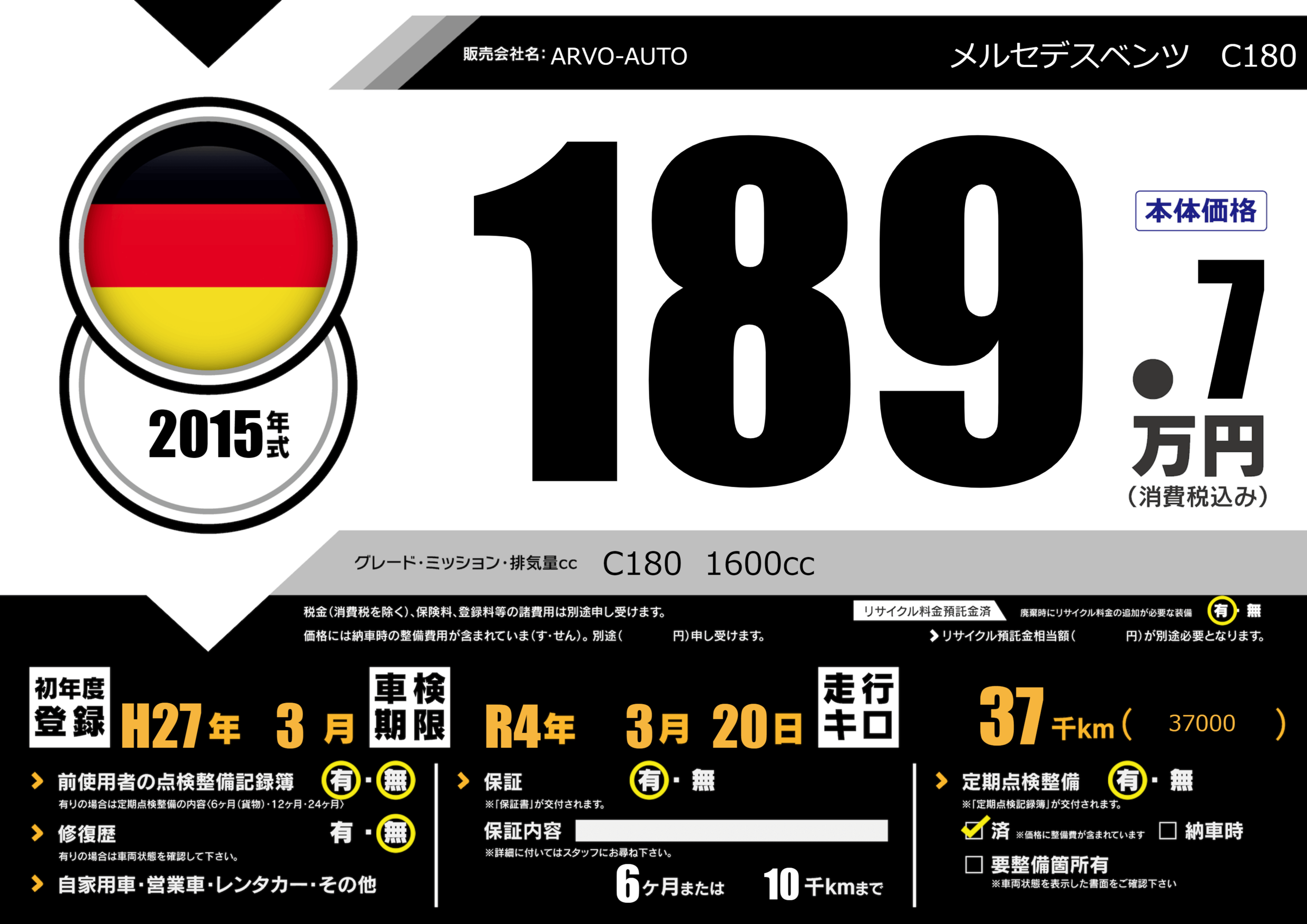 | 定期点検整備 | 定期点検整備あり 定期点検整備済み | ||