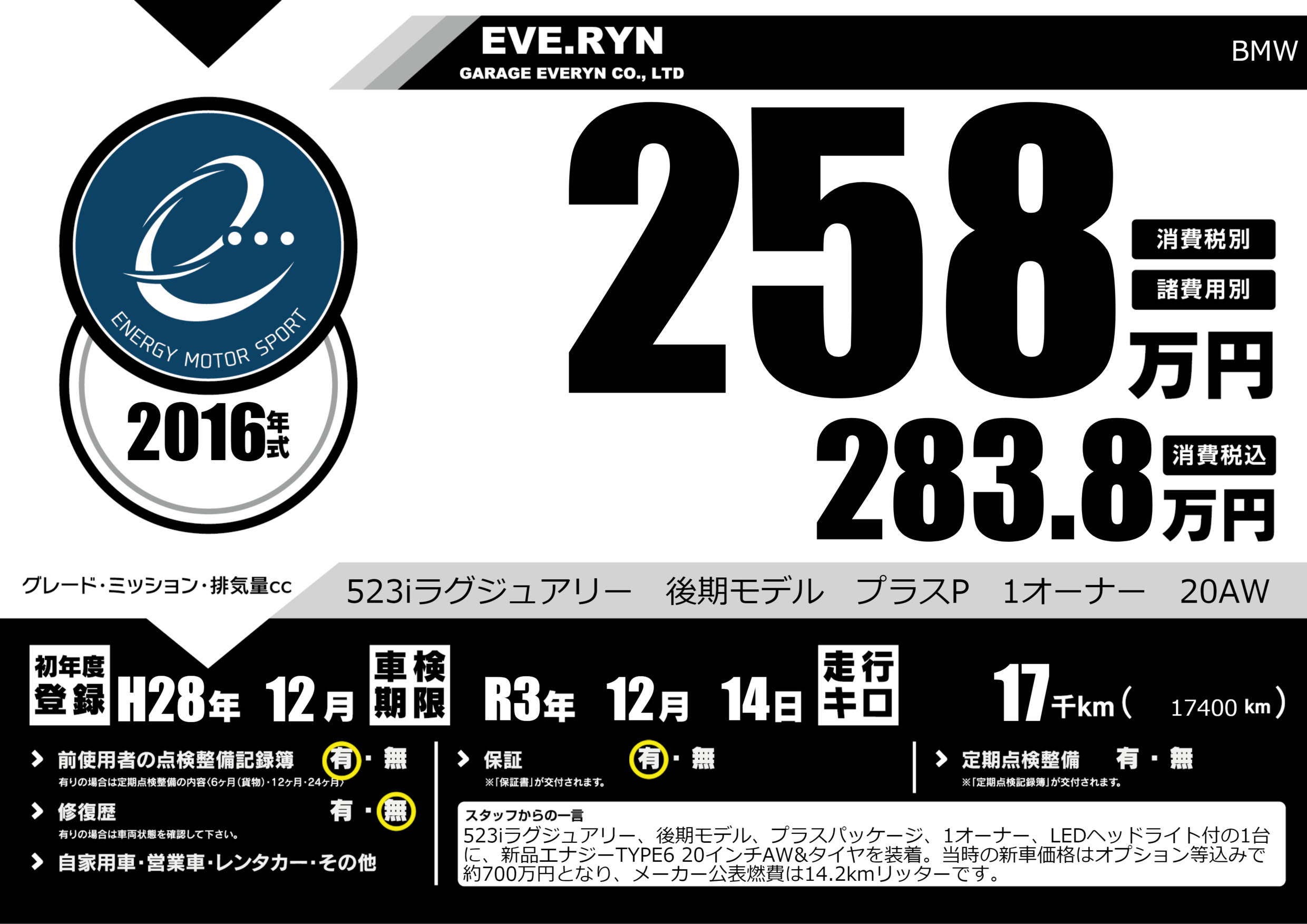 523iラグジュアリー 後期モデル プラスP 1オーナー 20AW |
