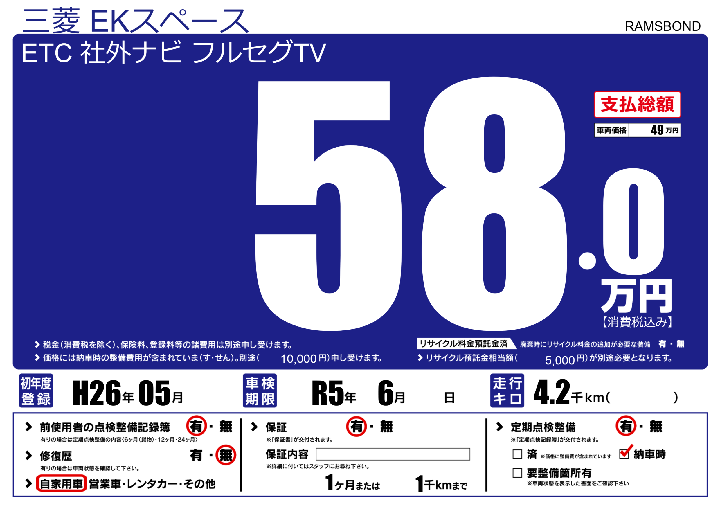 | 車名 | 三菱 EKスペース | グレード ミッション 排気量 |