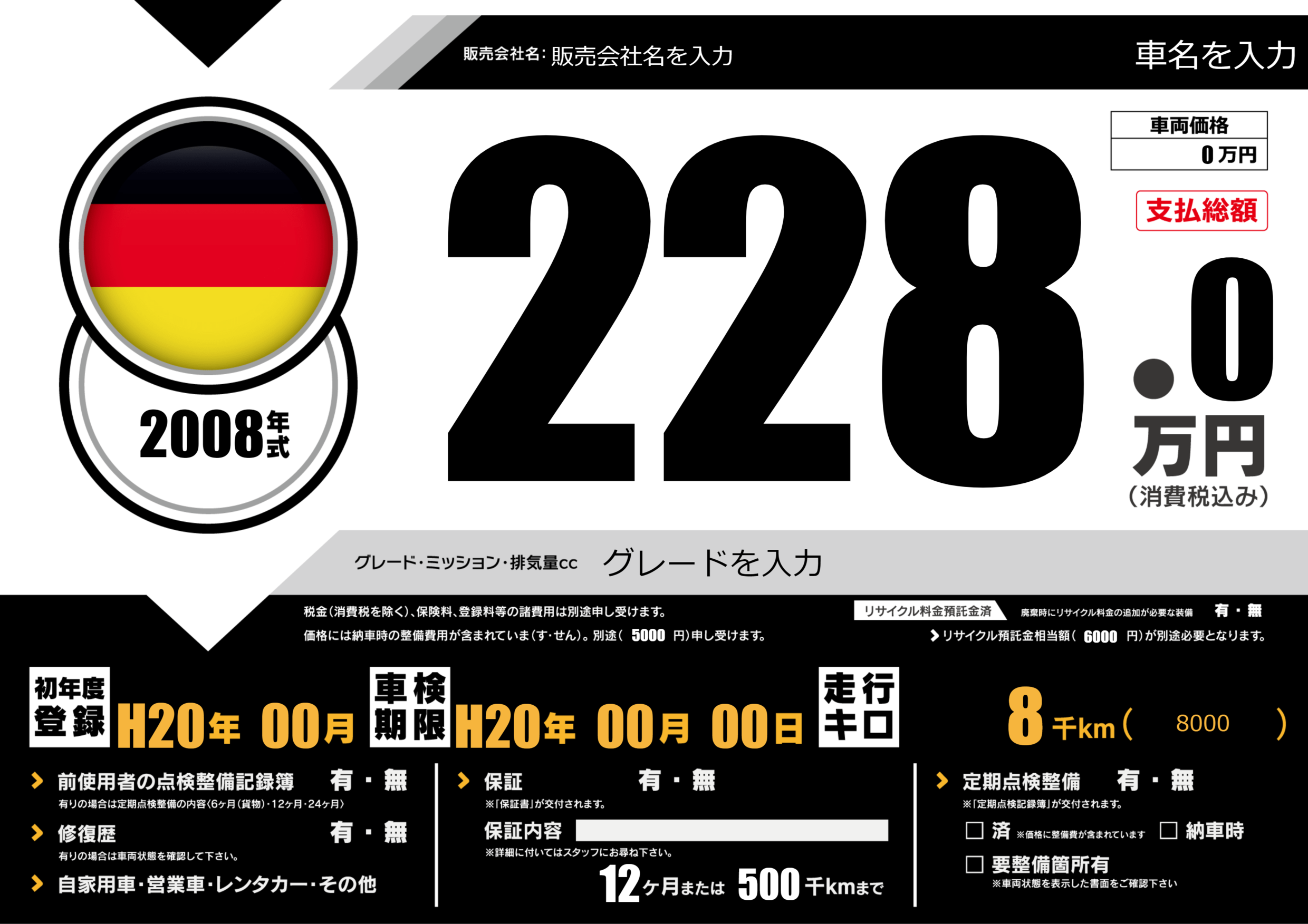 | 走行キロ | 0.8万km | 初年度登録 | H20年00月 |