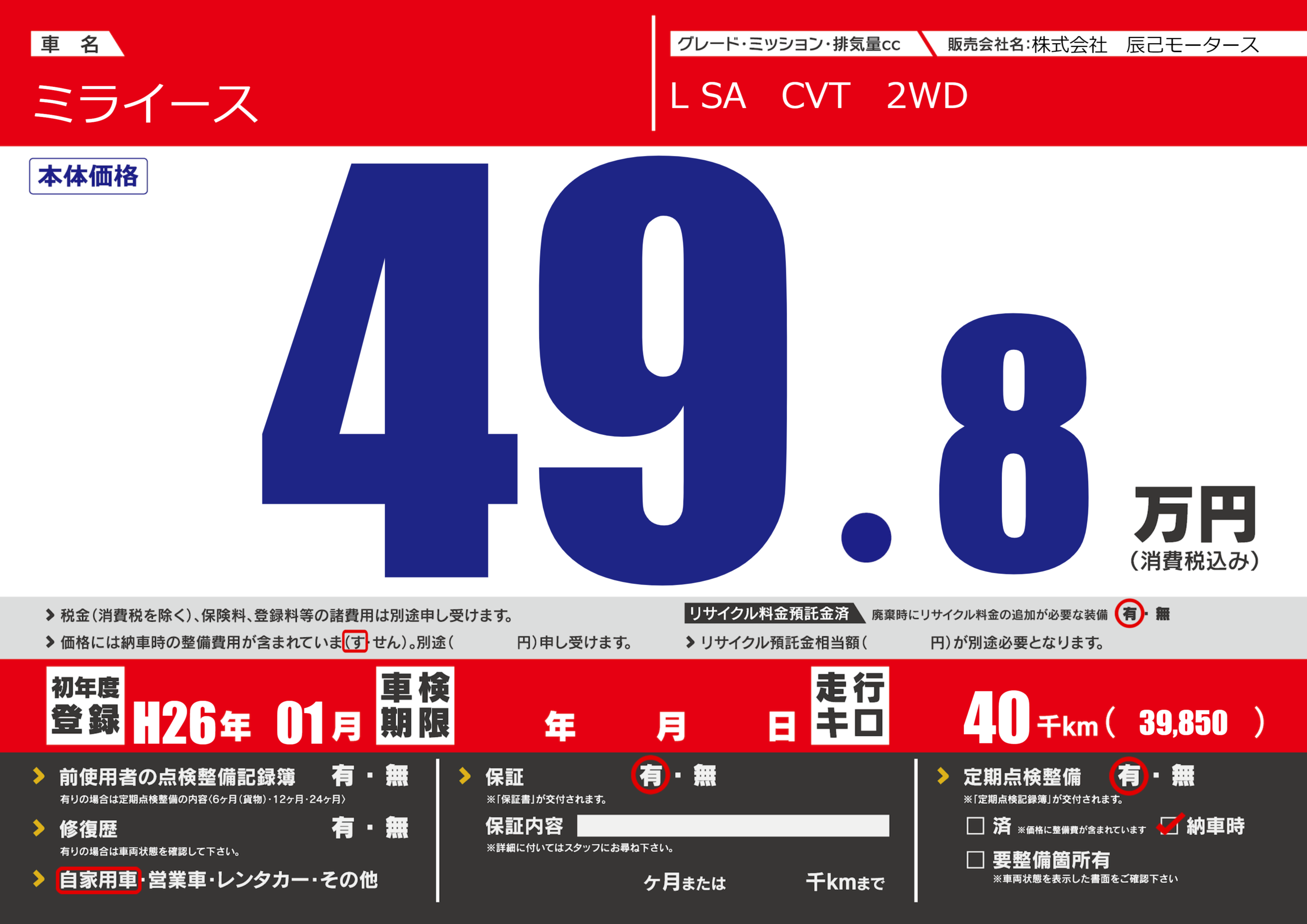 | 走行キロ | 4万km | ||