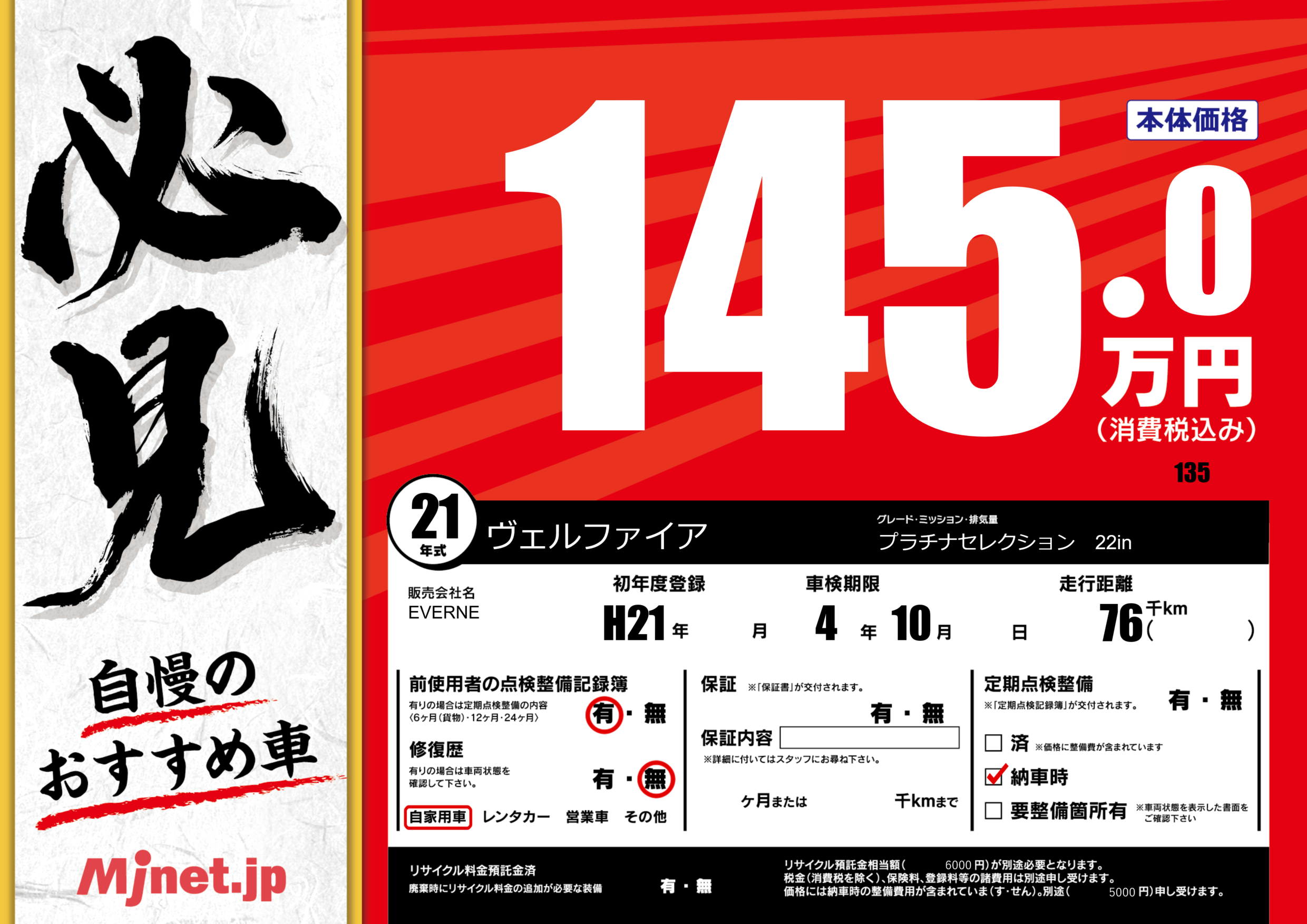 | 初年度登録 | H21年 | ||