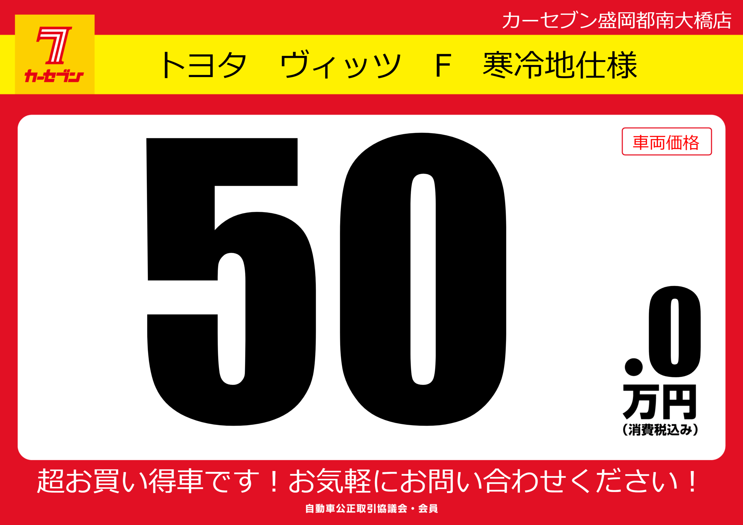 | 車名 | トヨタ ヴィッツ F 寒冷地仕様 | グレード ミッション 排気量 |