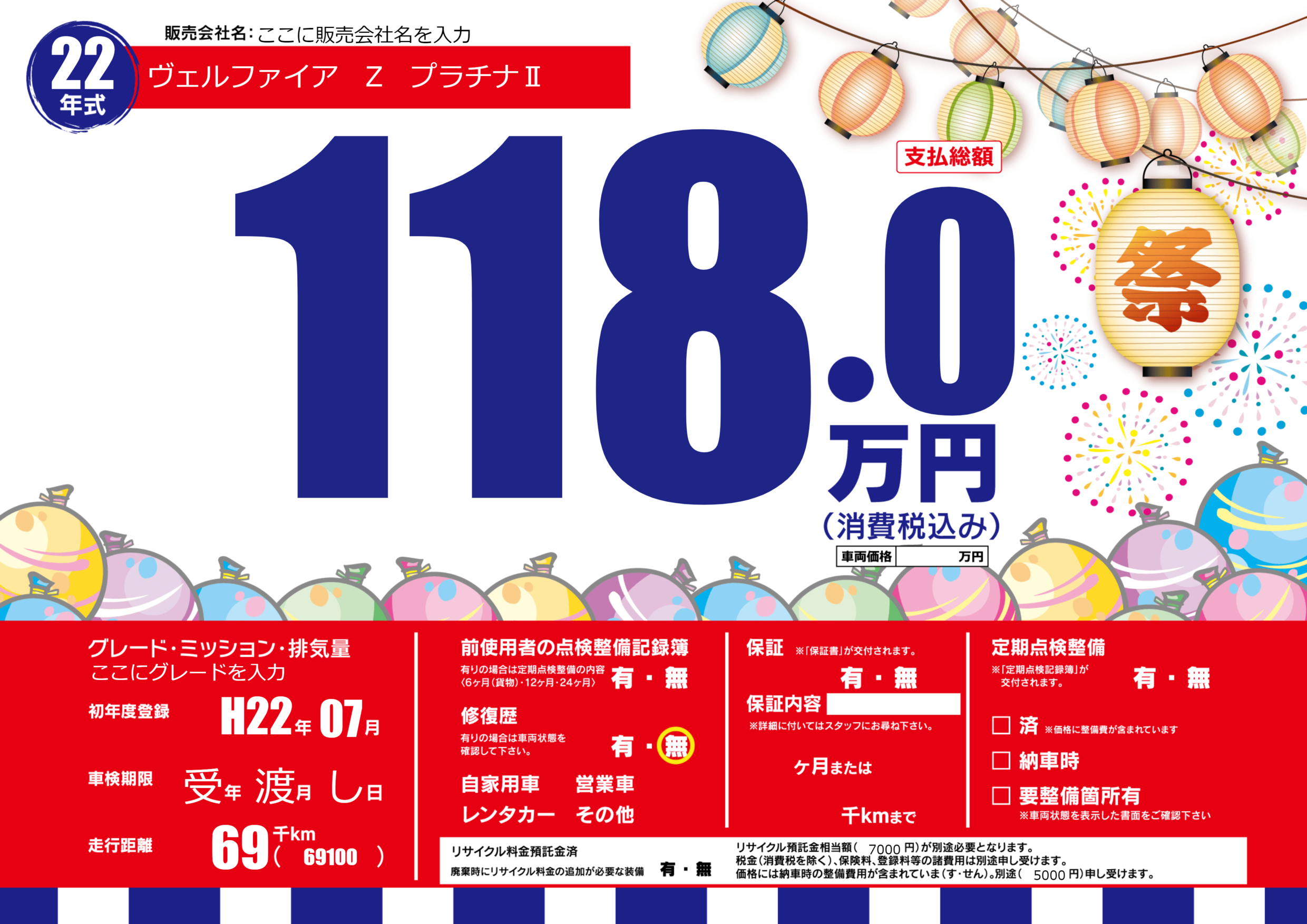 | 車名 | ヴェルファイア Z プラチナⅡ | グレード ミッション 排気量 |