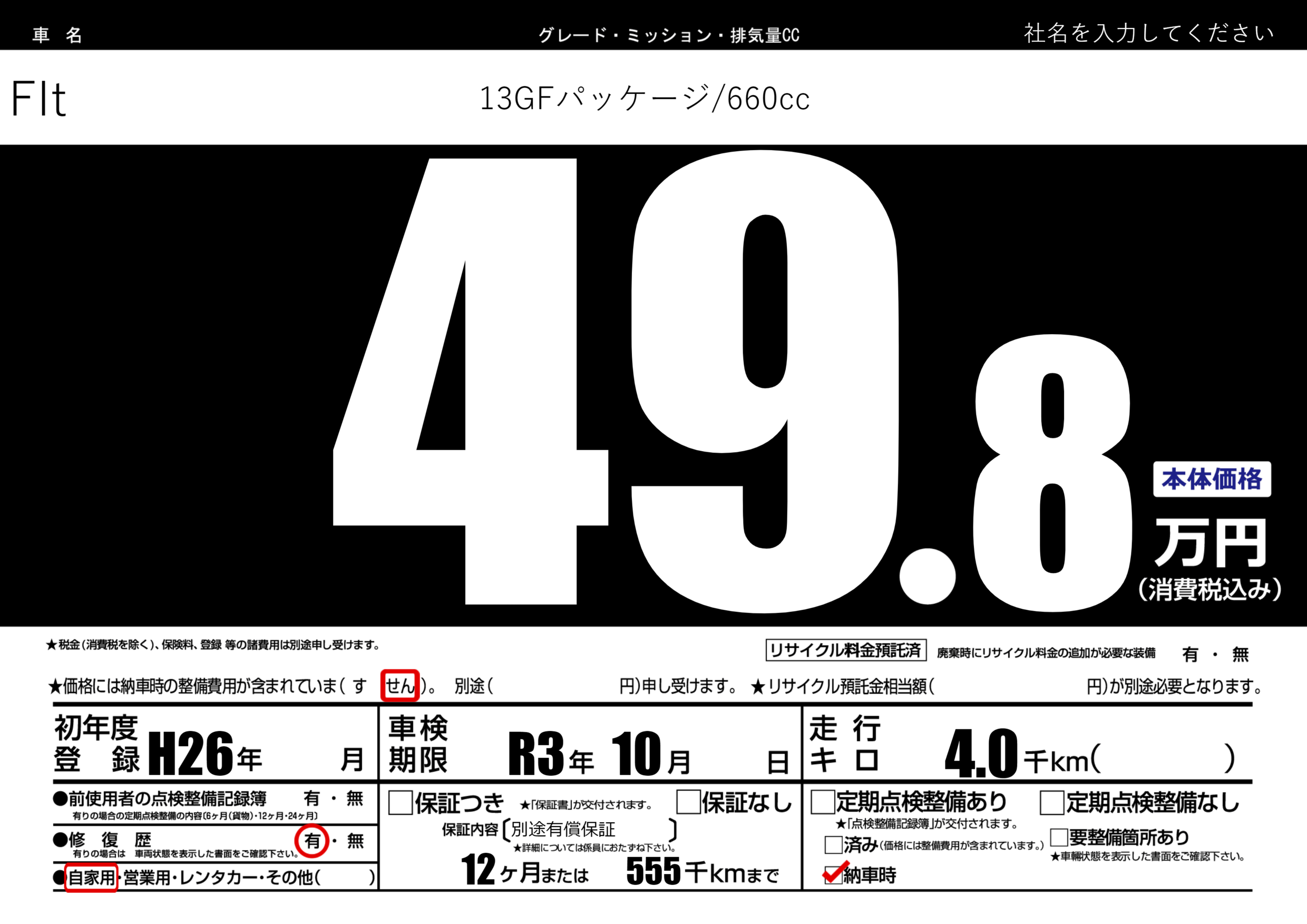| 走行キロ | 0.4万km | 初年度登録 | H26年---月 |
