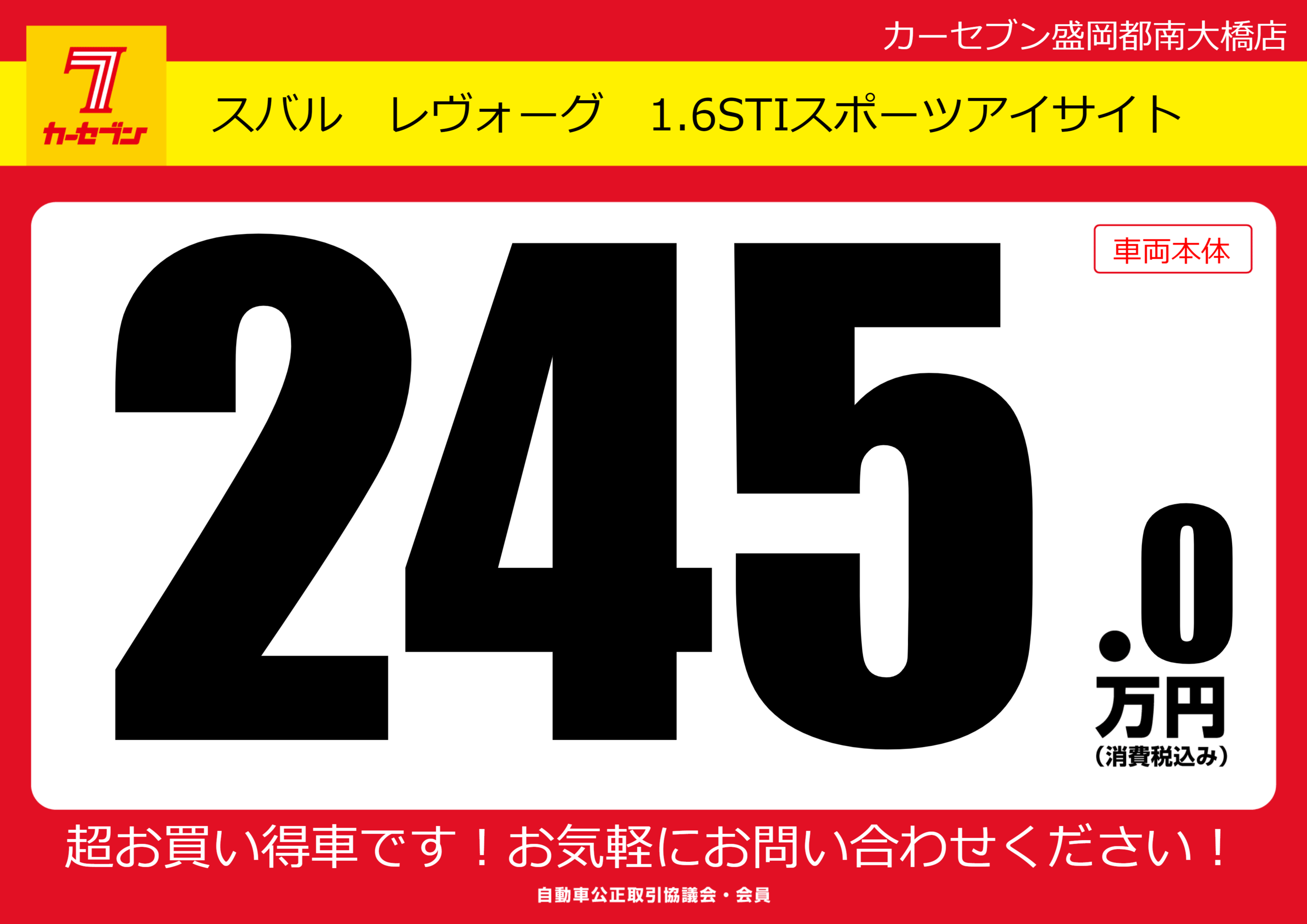 | 車名 | スバル レヴォーグ 1.6STIスポーツアイサイト | グレード ミッション 排気量 |