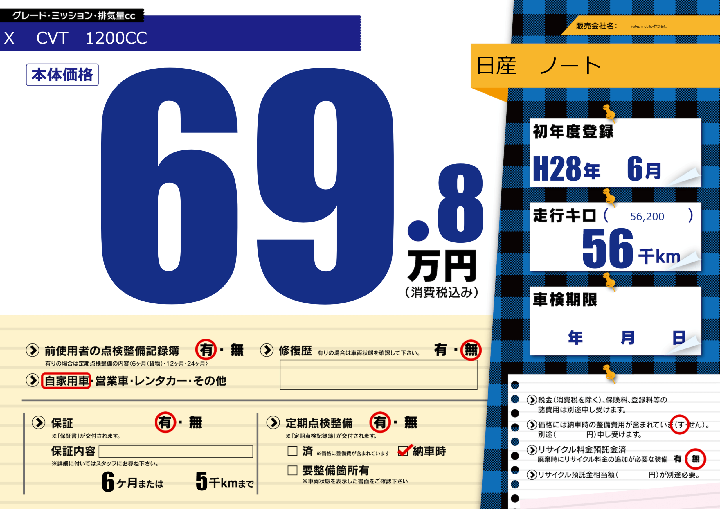 保証付き 保証内容(---) 6ヶ月または(5)千kmまで |