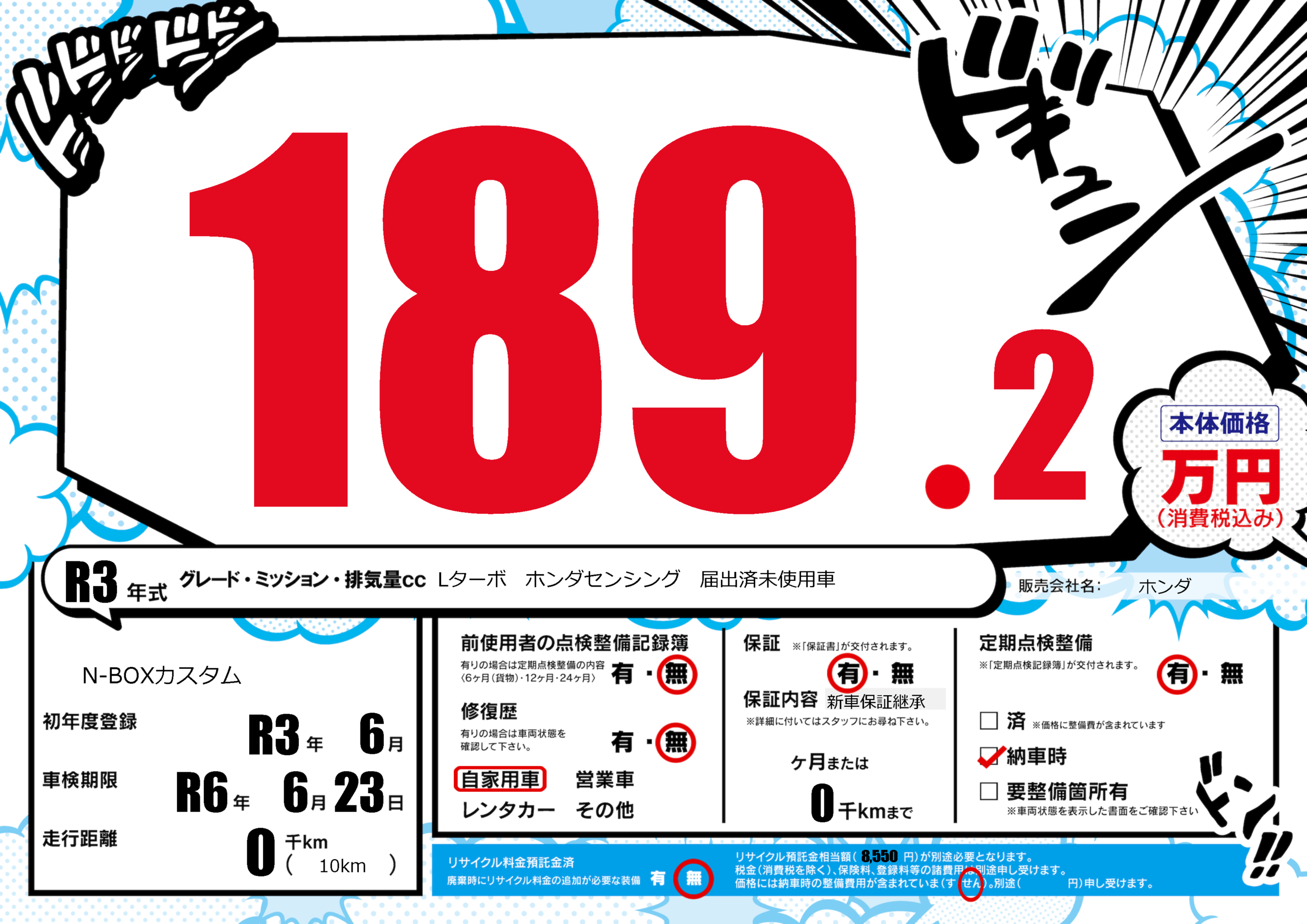 保証付き 保証内容(新車保証継承) ---ヶ月または(0)千kmまで |