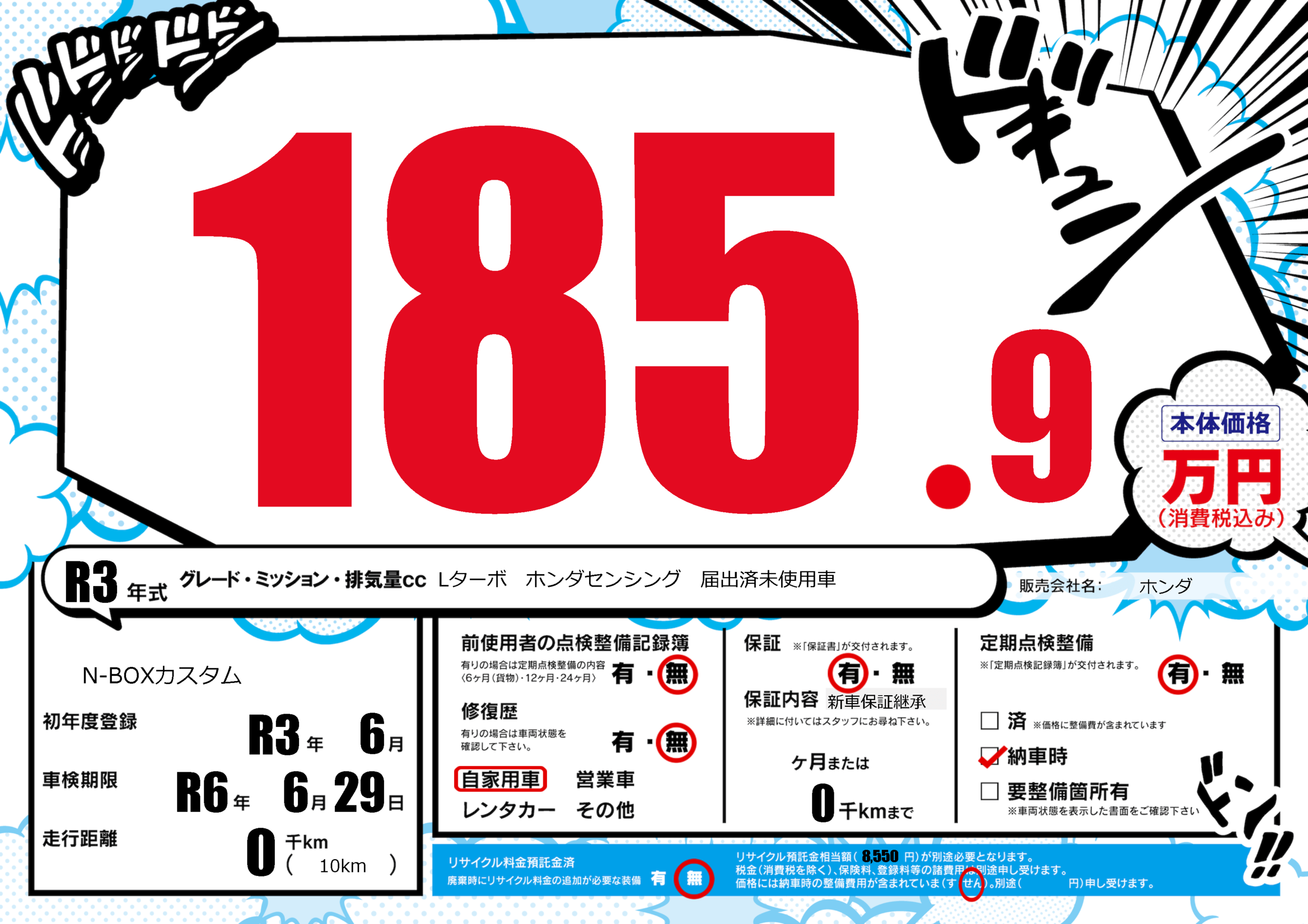 | 走行キロ | - | 初年度登録 | R3年6月 |