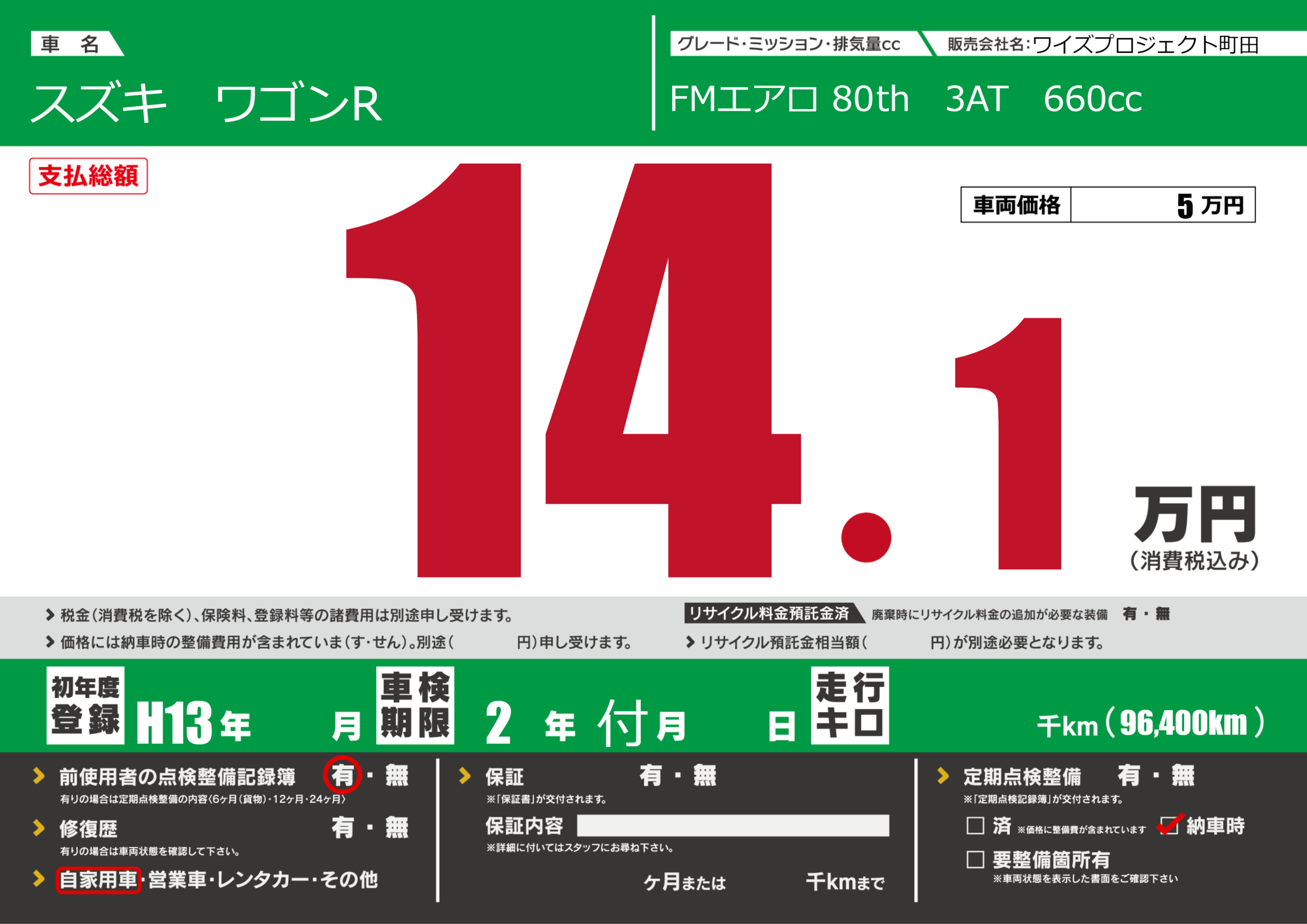 定期点検整備 | 納車時あり |