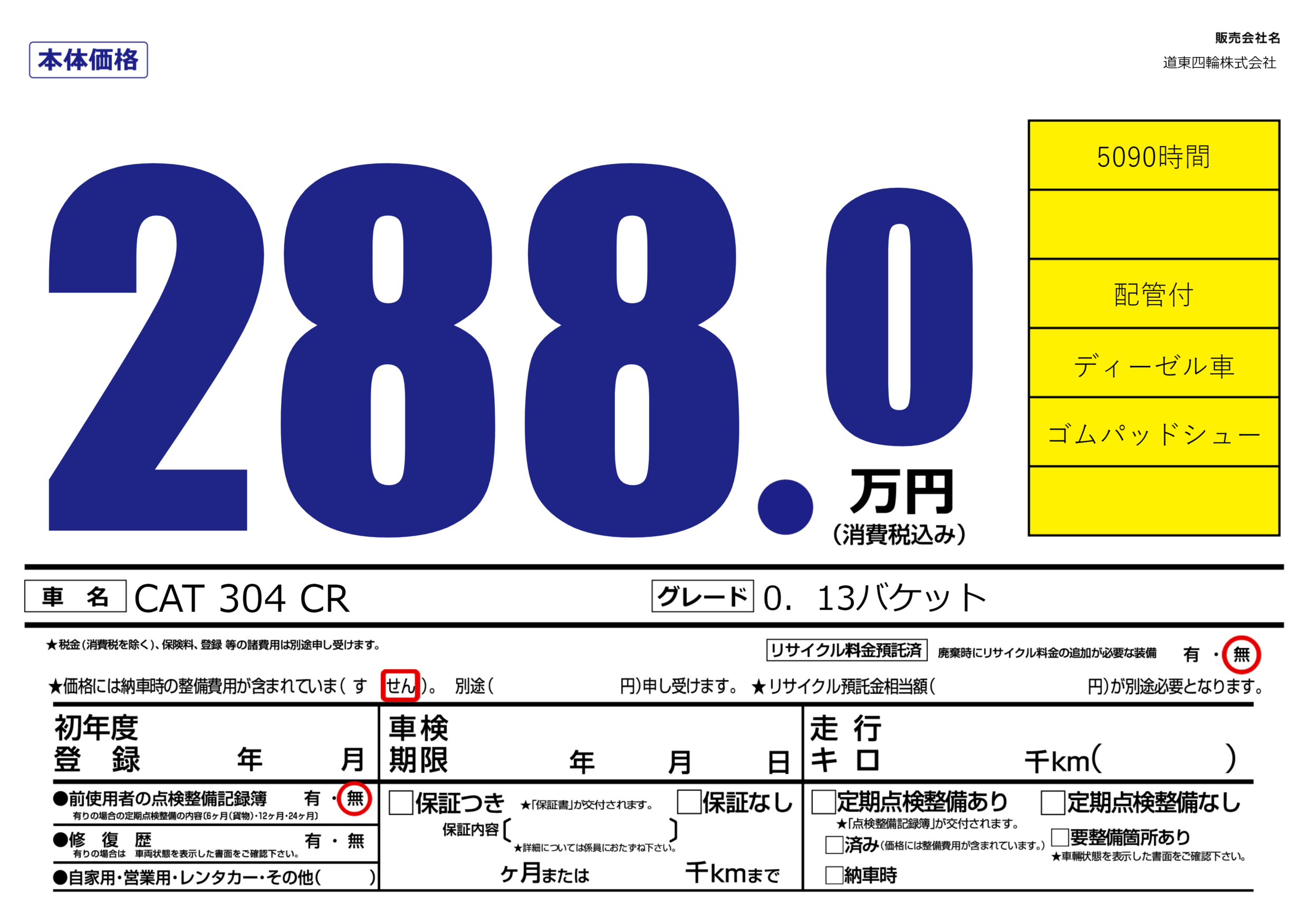| 車名 | CAT 304 CR | グレード ミッション 排気量 |