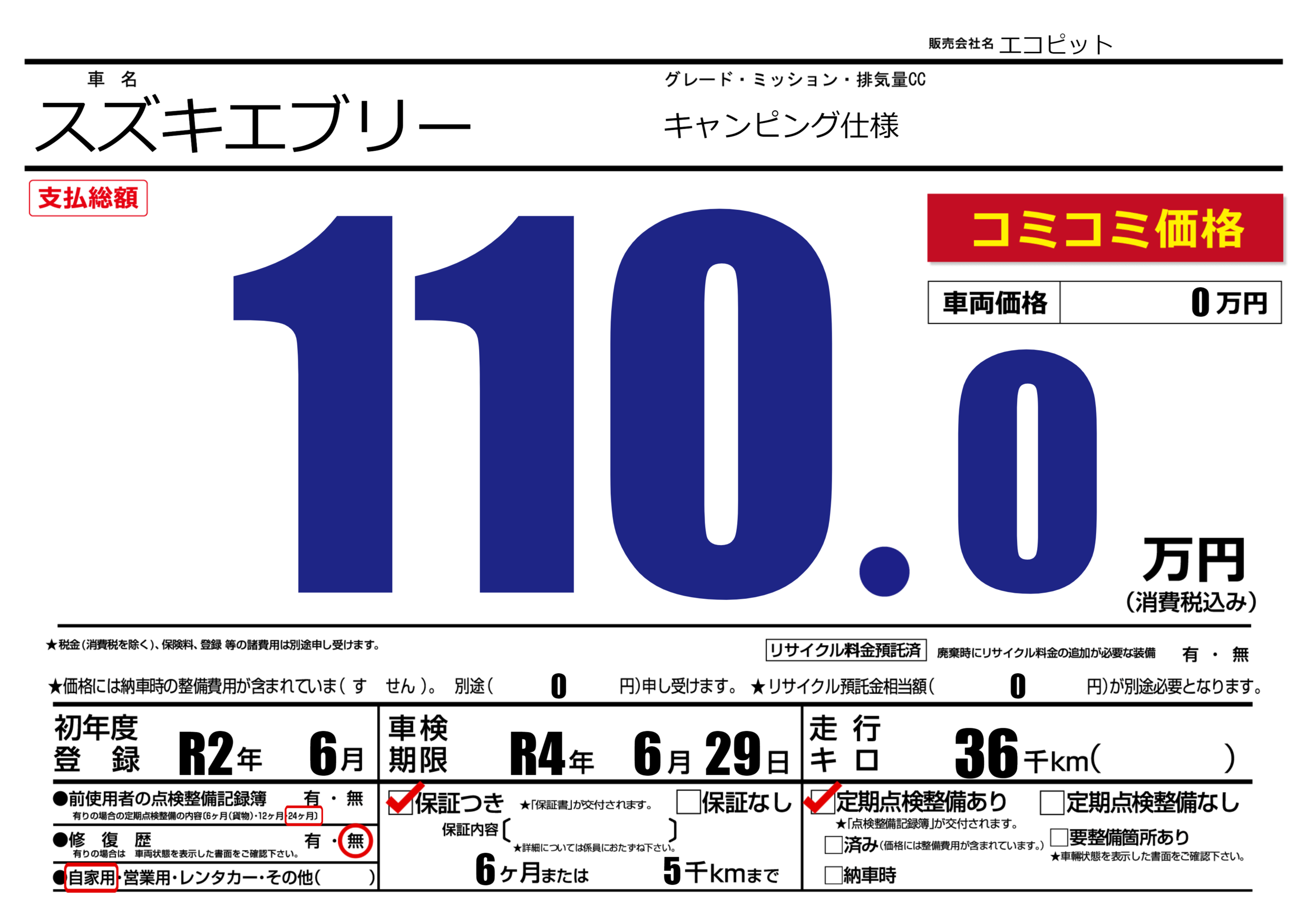 なし | 車検制限 | R4年6月29月 |