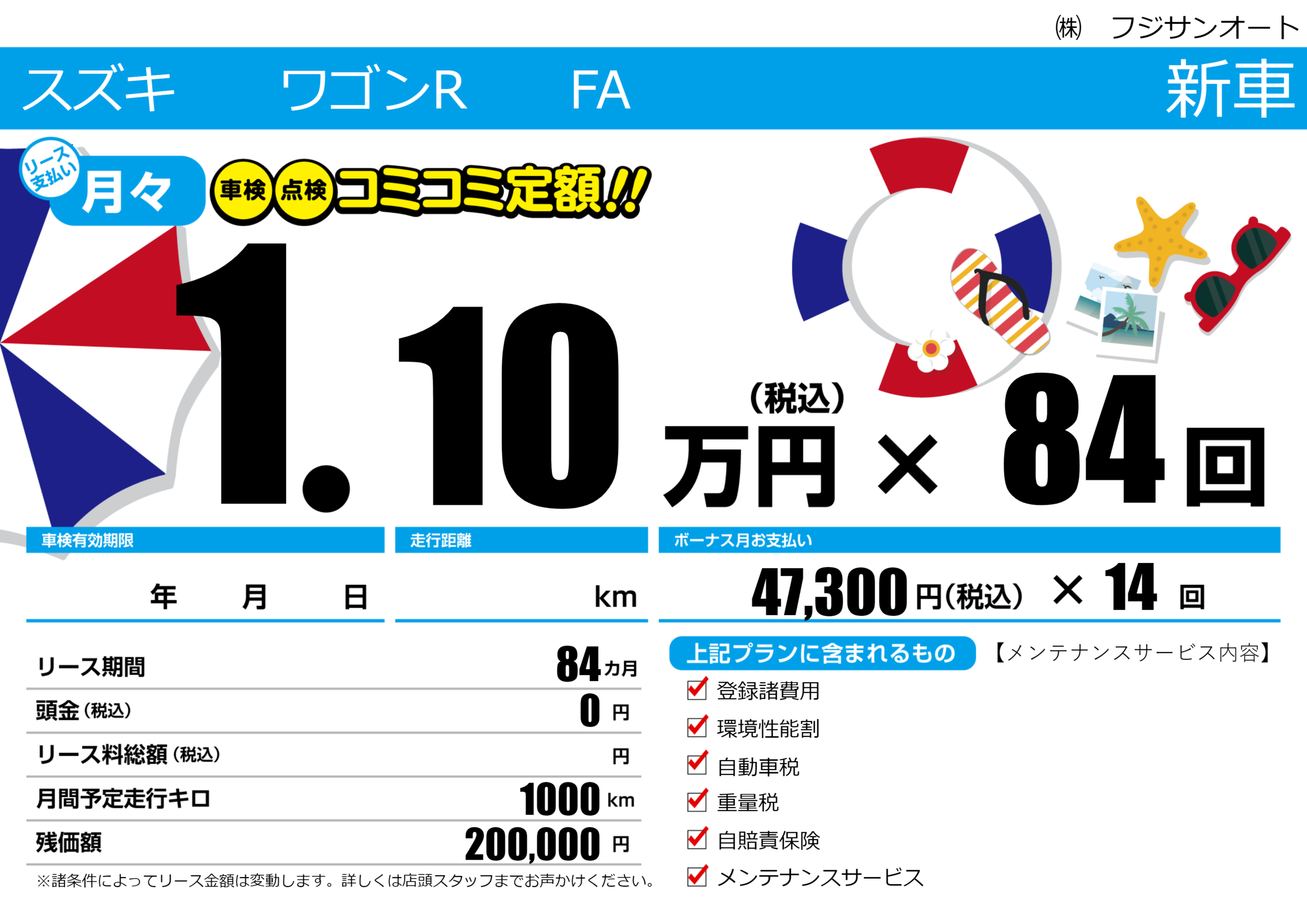 | 車名 | スズキ ワゴンR FA | グレード ミッション 排気量 |