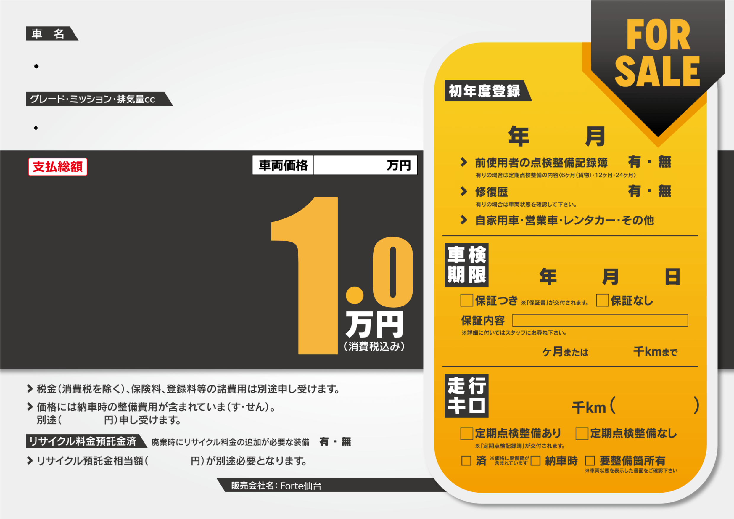 販売価格(支払い総額): 1万円 年式: - 走行距離: -