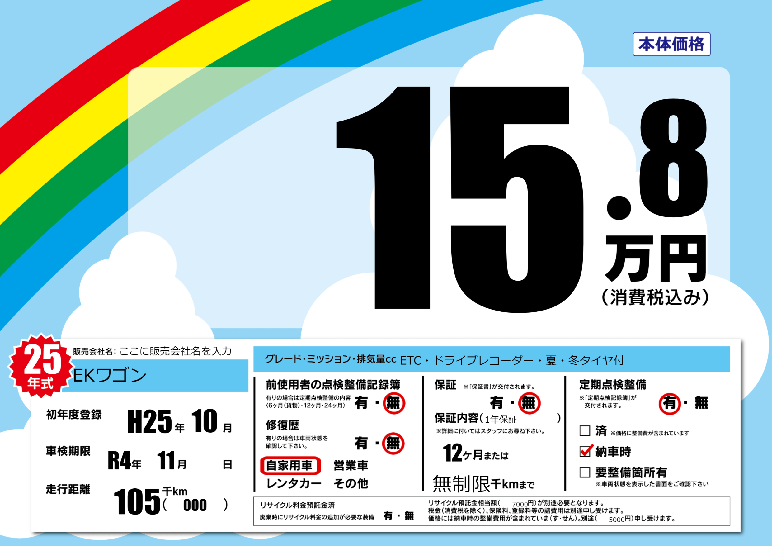 | 定期点検整備 | 定期点検整備あり 納車時あり | ||