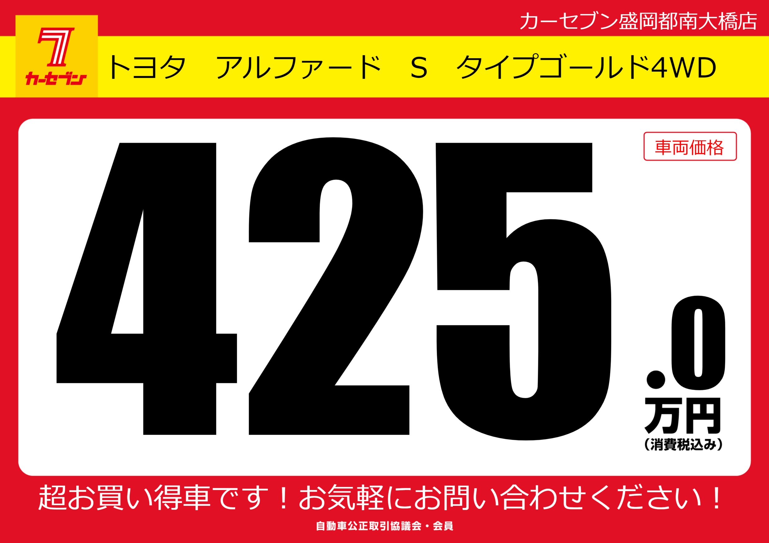 | 車名 | トヨタ アルファード S タイプゴールド4WD | グレード ミッション 排気量 |